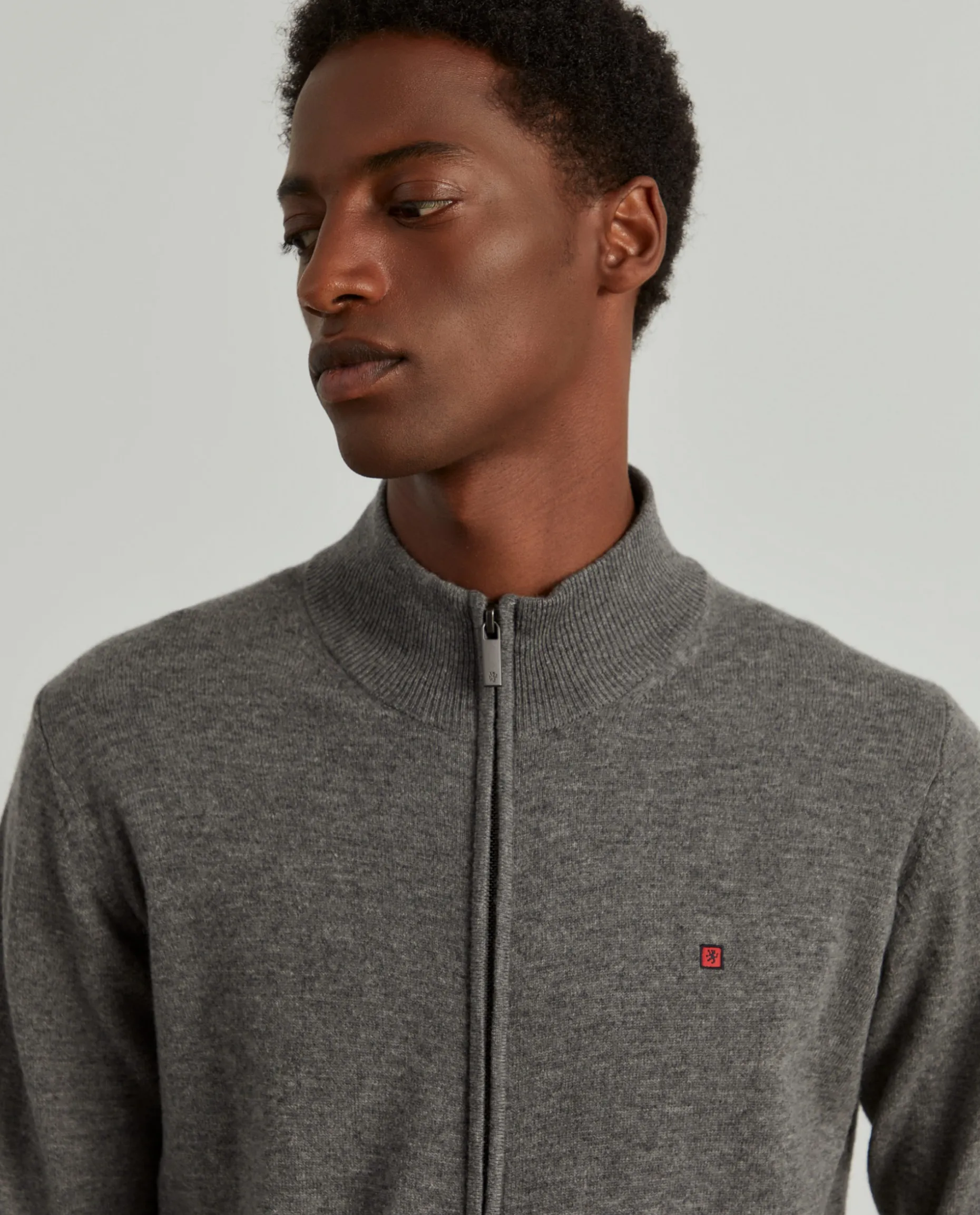 A camada extra essencial no guarda-roupa das estações mais frias. Casaco de malha, manga comprida, a apertar com fecho de duplo cursor. De cor lisa, à exceção do pequeno emblema no peito. É confecionado, na totalidade, em lã para maior conforto e isolamento térmico. Disponível em várias cores.
