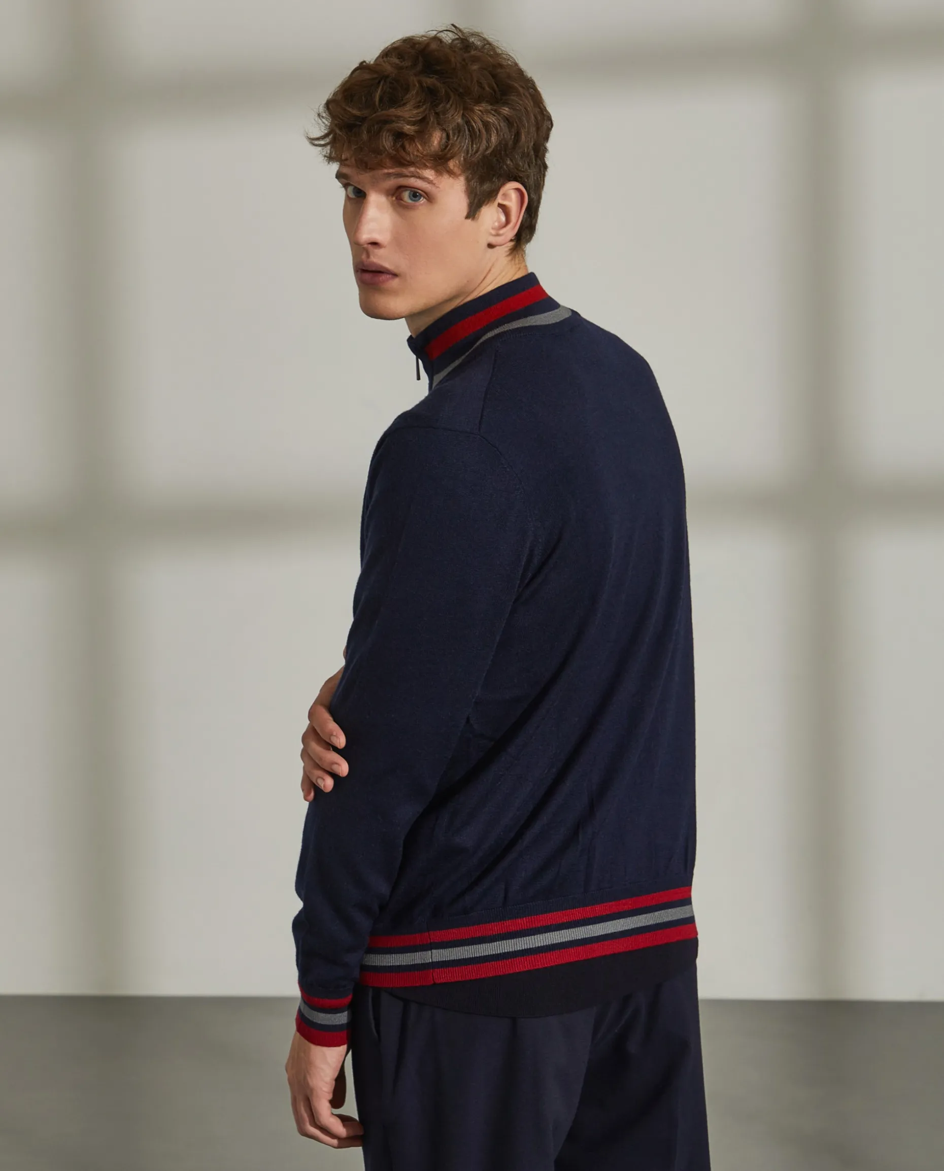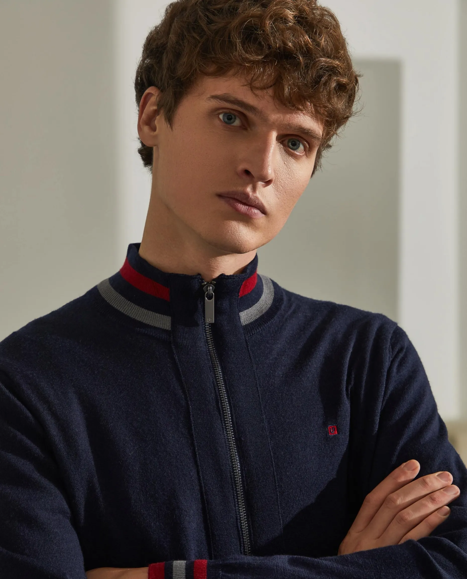 Agasalhe-se com sofisticação graças a este casaco de lã merino. Com mangas compridas, apresenta um fecho duplo na frente e com riscas contrastantes na gola, punhos e cintura. O bordado LP no peito é o toque final perfeito.