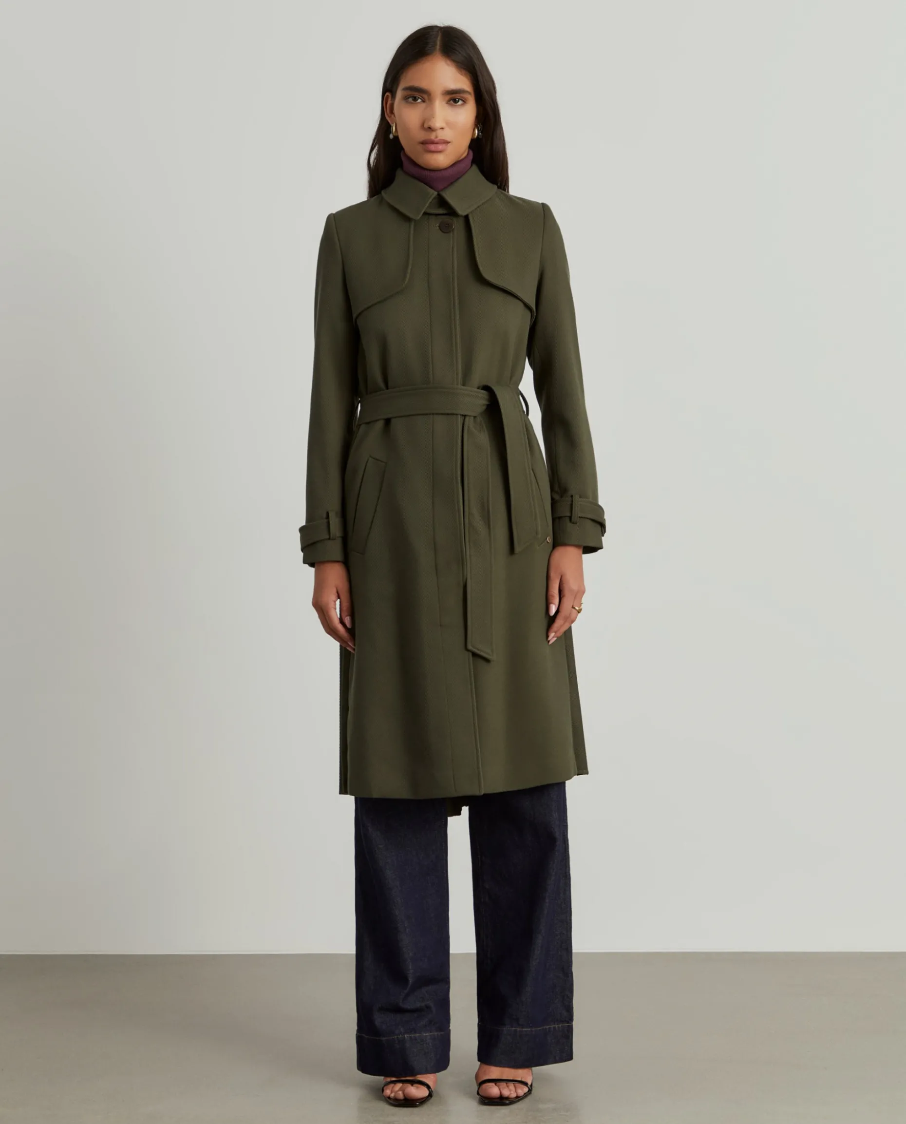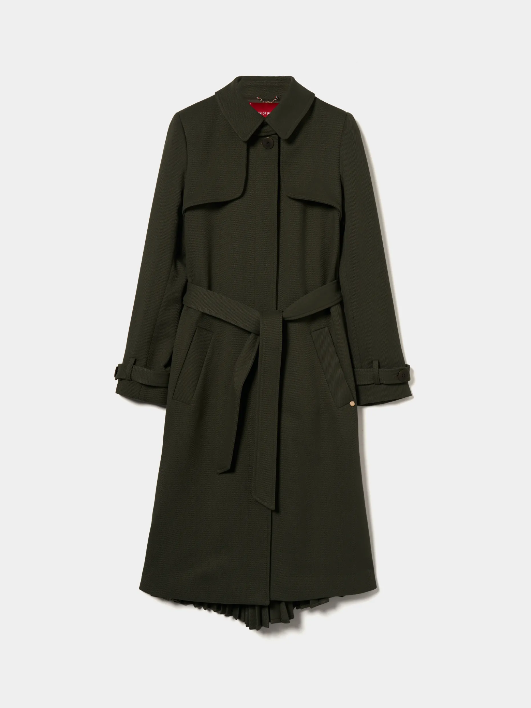 Obtenha um look clássico intemporal com este casaco estilo gabardine com pormenor elegante de plissado nas costas. Com cinto removível no mesmo tecido e tom, e escapulário atrás e à frente. Bolsos frontais e punho com tira abotoada.