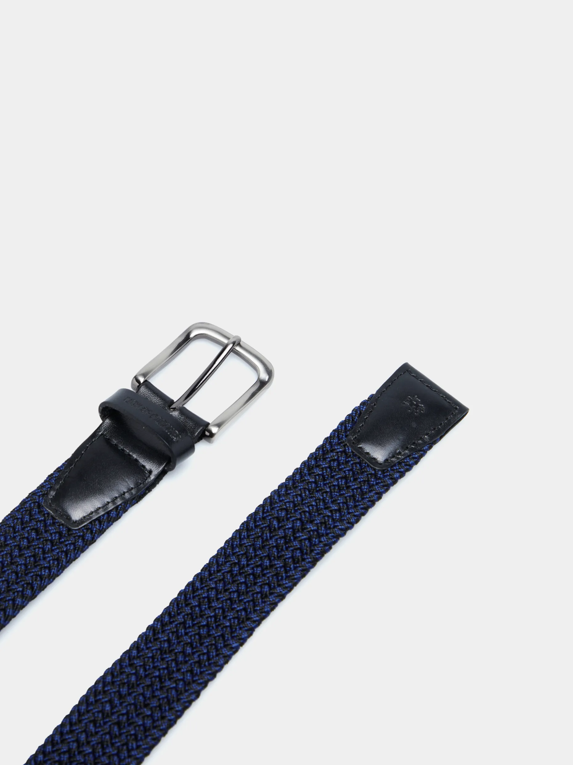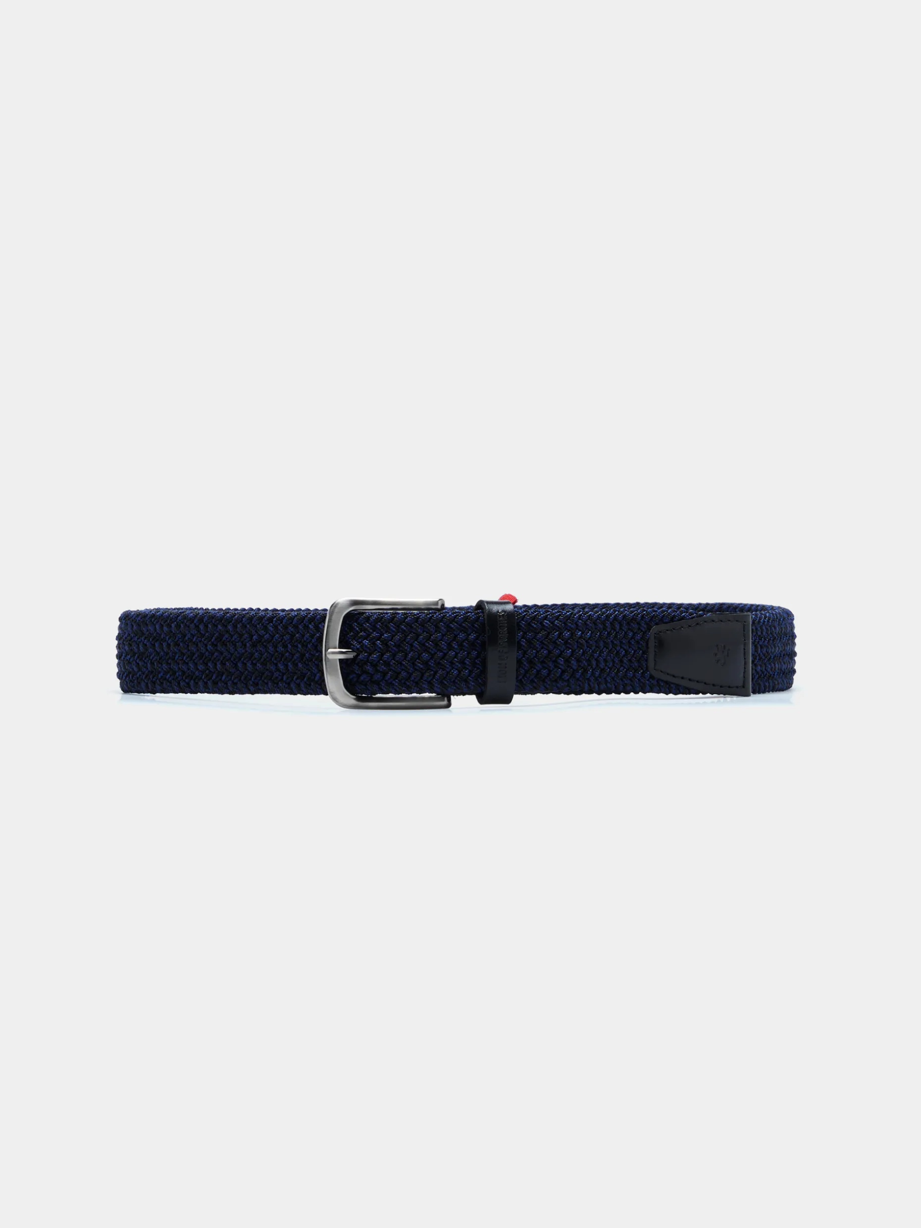Cinto elástico entrançado com fivela quadrada. Pontas em contraste com logotipo Lion of Porches gravado no passador. Largura do cinto: 3,5cm.