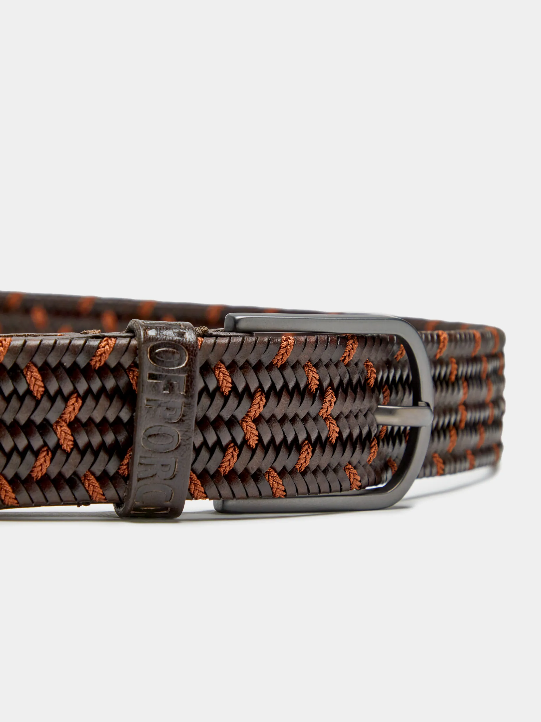 Este cinto entrançado de pele é o toque final perfeito para os seus looks. É finalizado com uma fivela de metal.