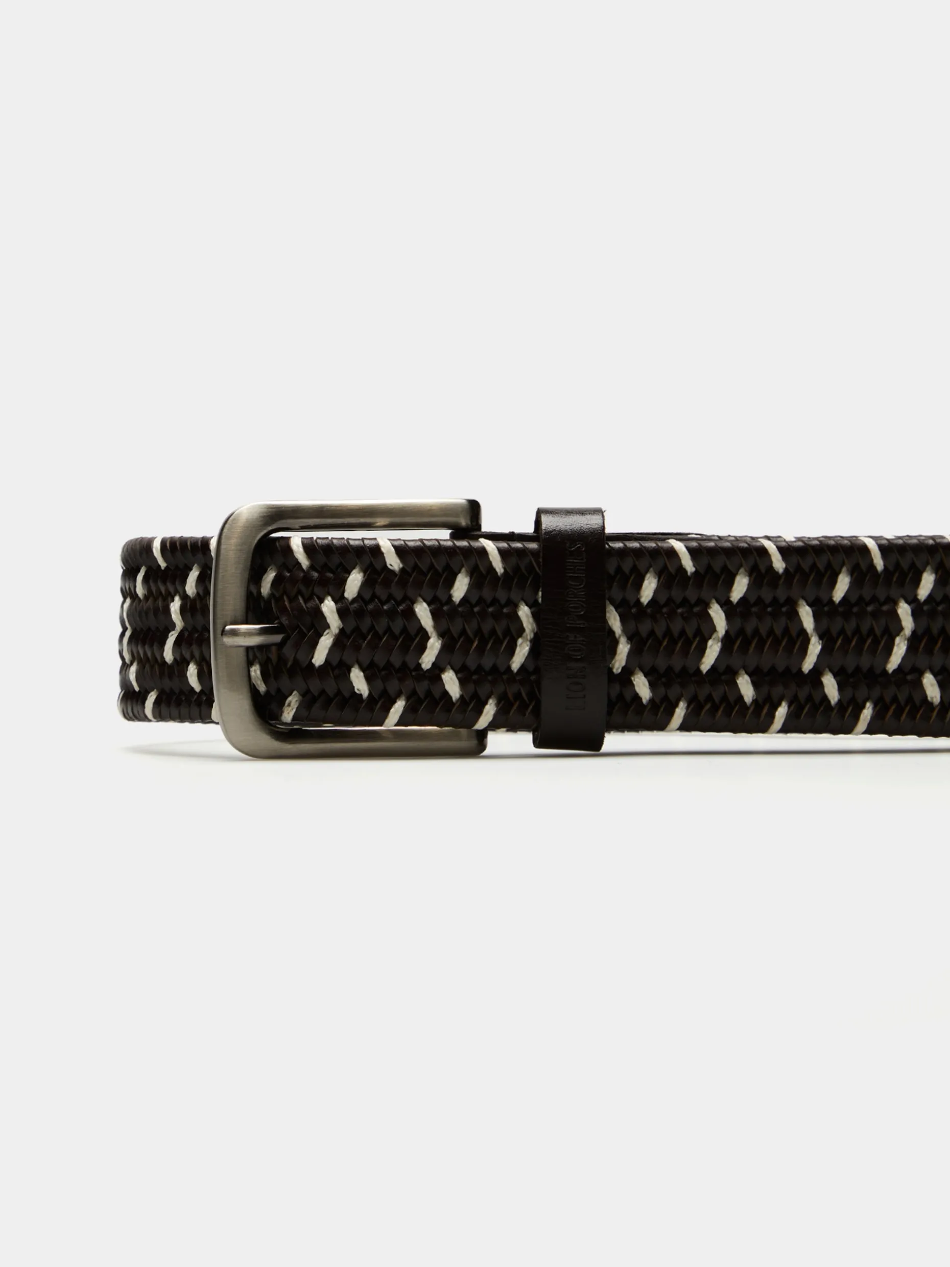 Cinto entrançado 100% pele. Fivela em metal e pormenor de branding Lion of Porches gravado na presilha.