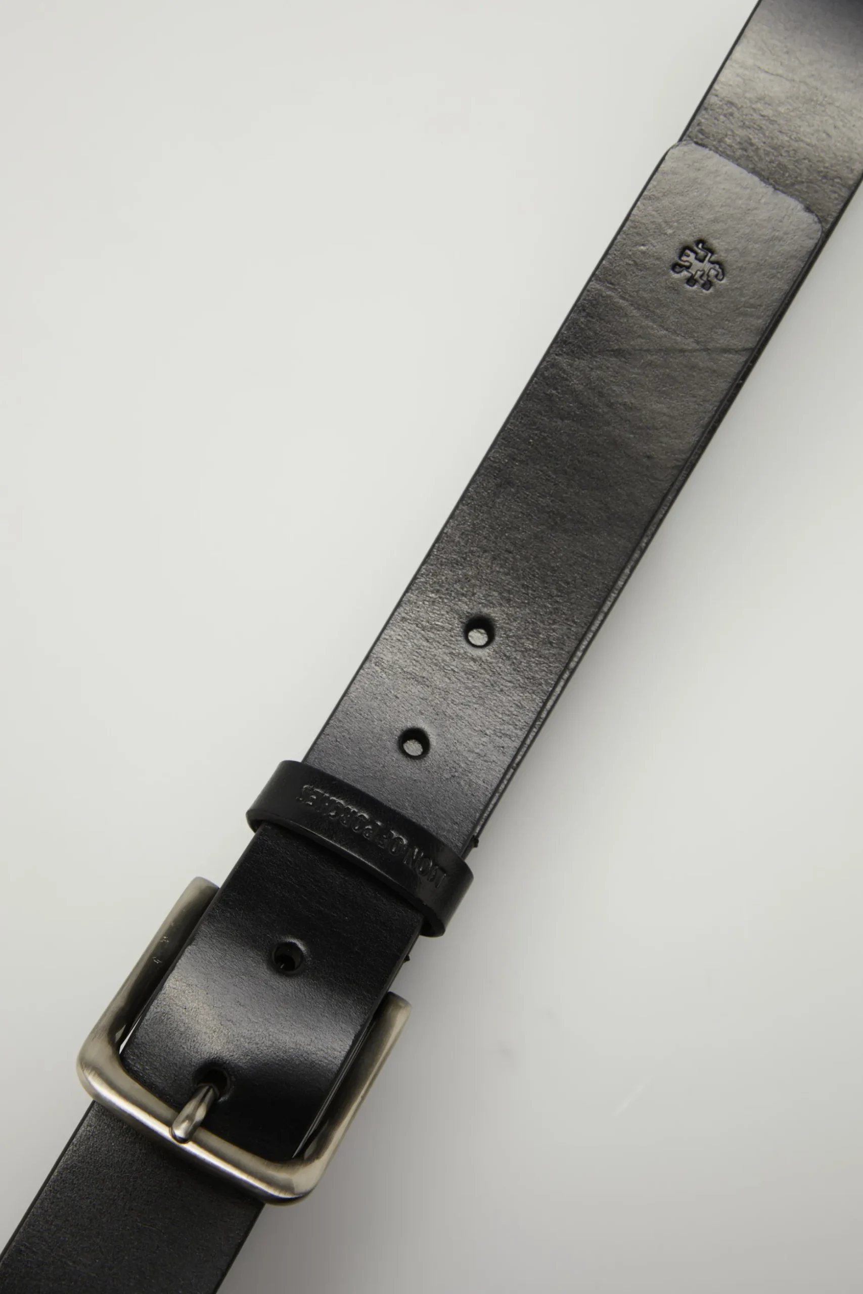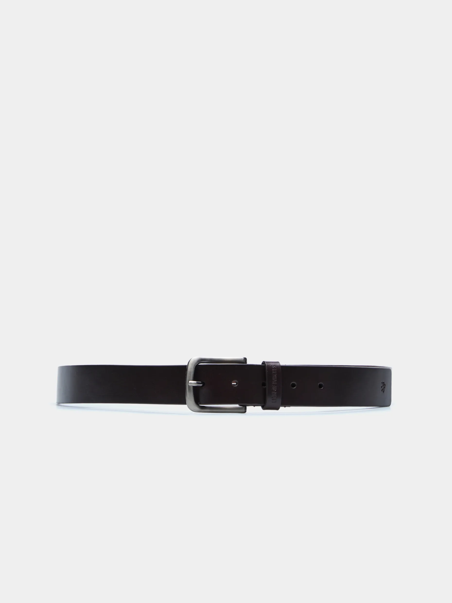 Cinto liso em pele com 3,5cm de largura. Fivela em metal e pormenor de branding Lion of Porches gravado na presilha.
