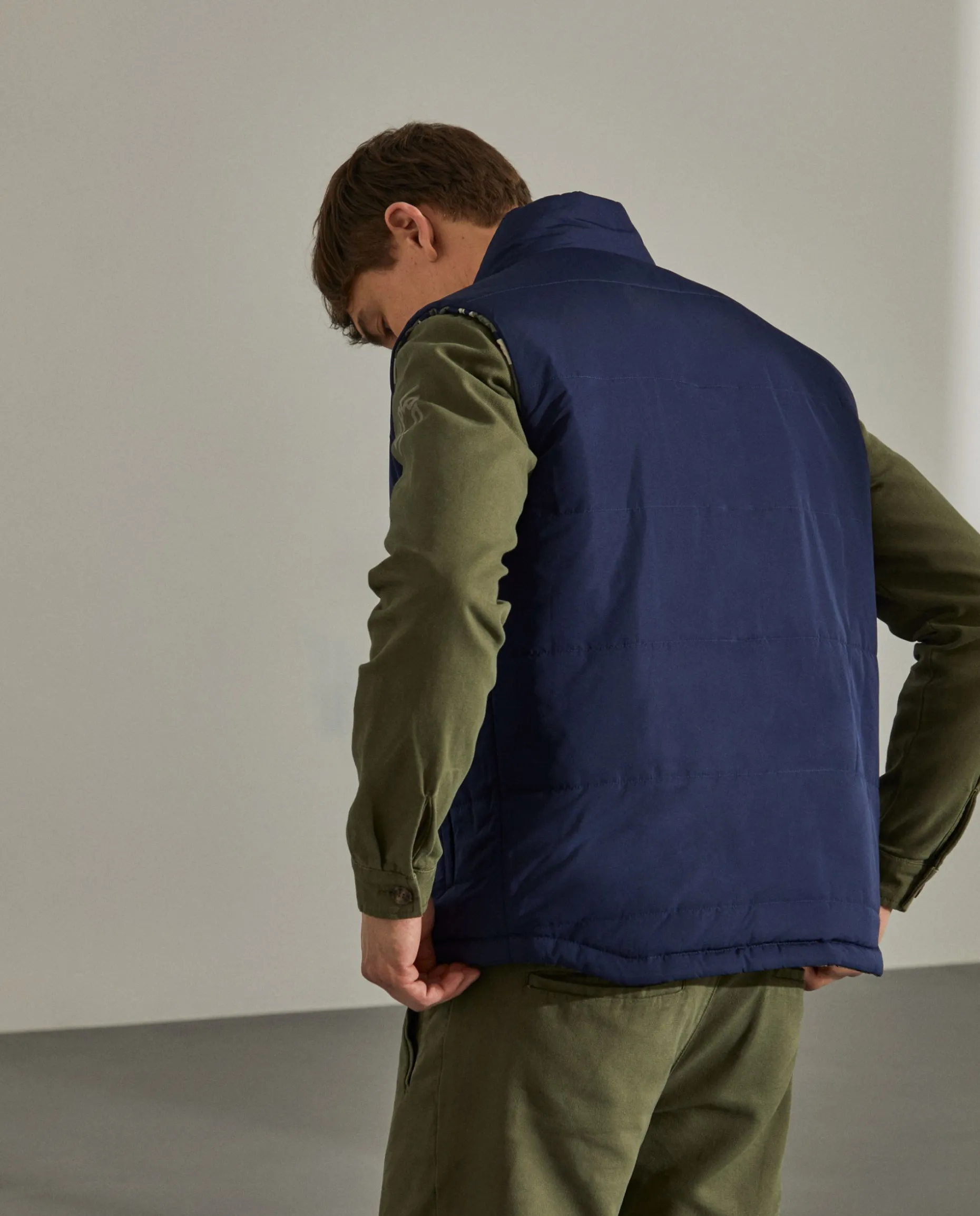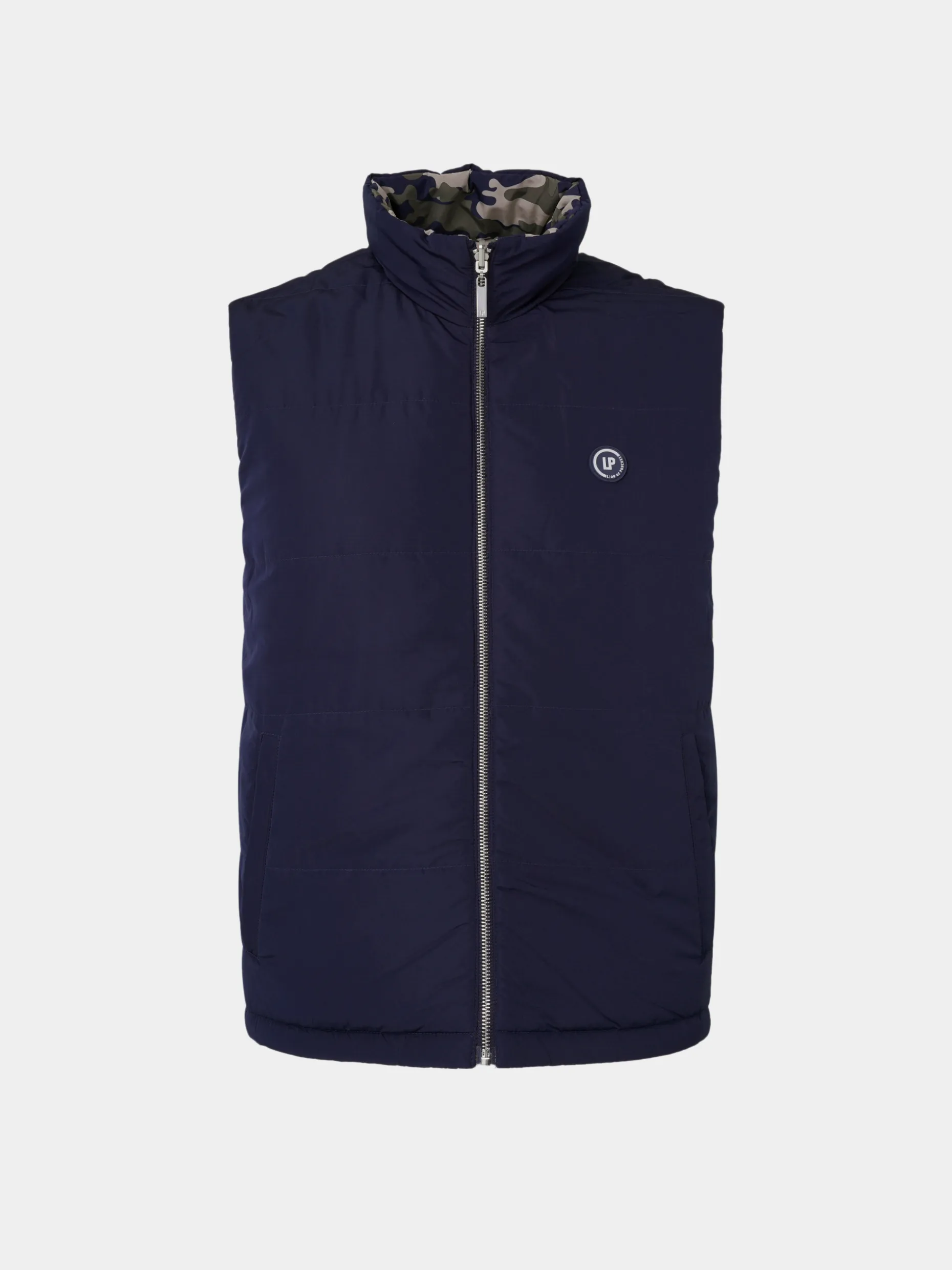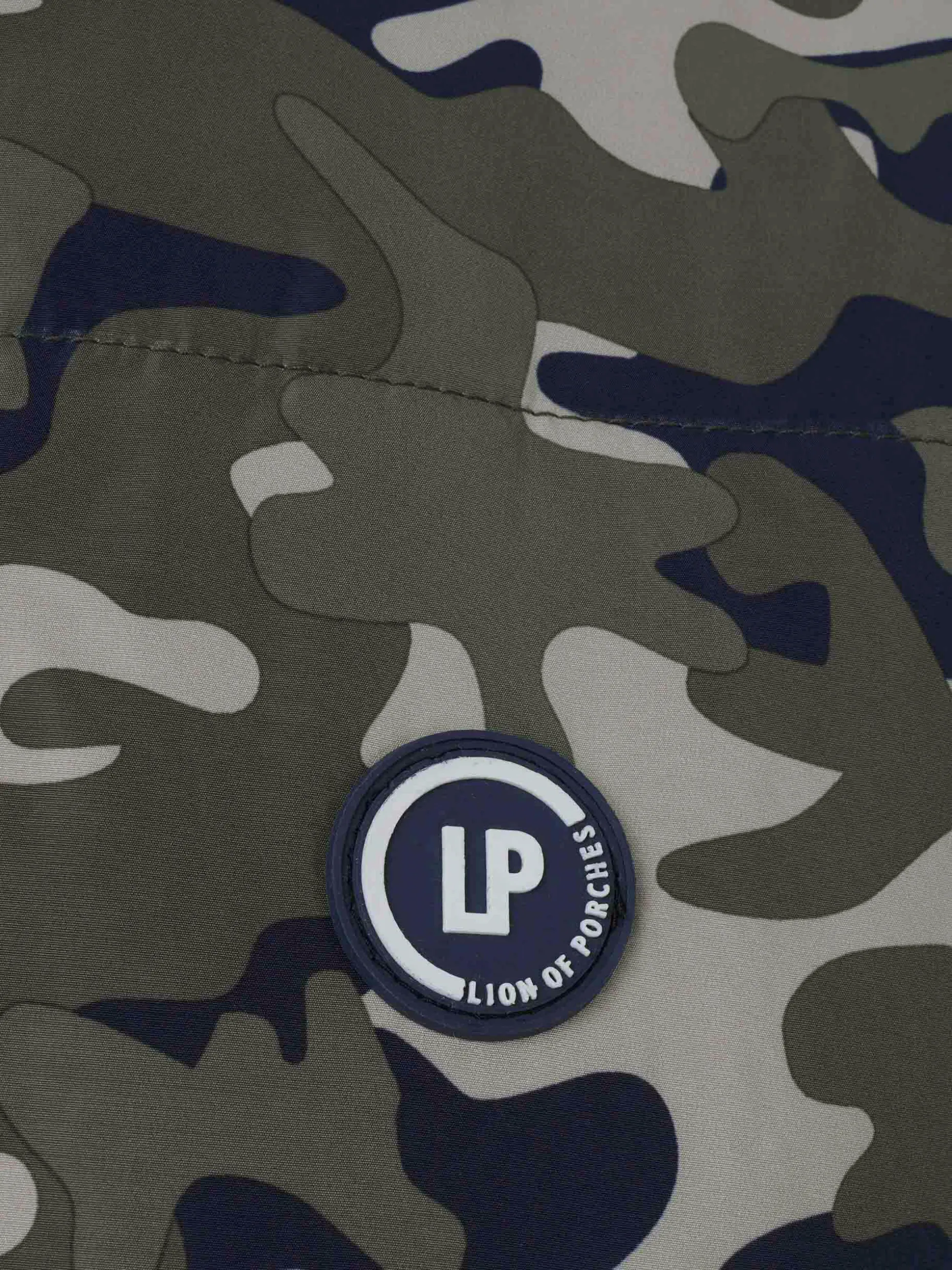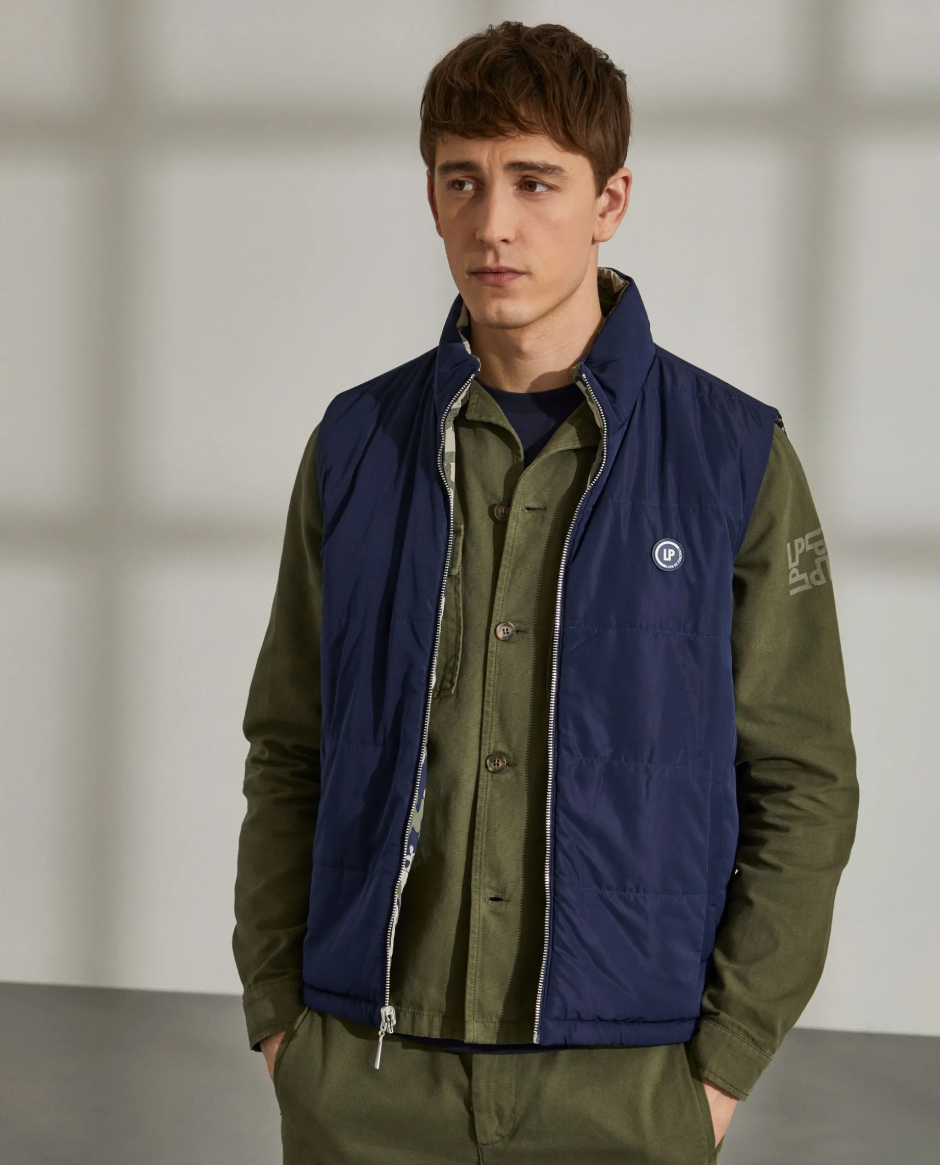 Colete reversível. Em tecido técnico. Aperta com fecho central reversível. Um lado com estampado camuflado e o outro com cor lisa. Dois bolsos em cada lado. Emblema Lion Of Porches no peito.