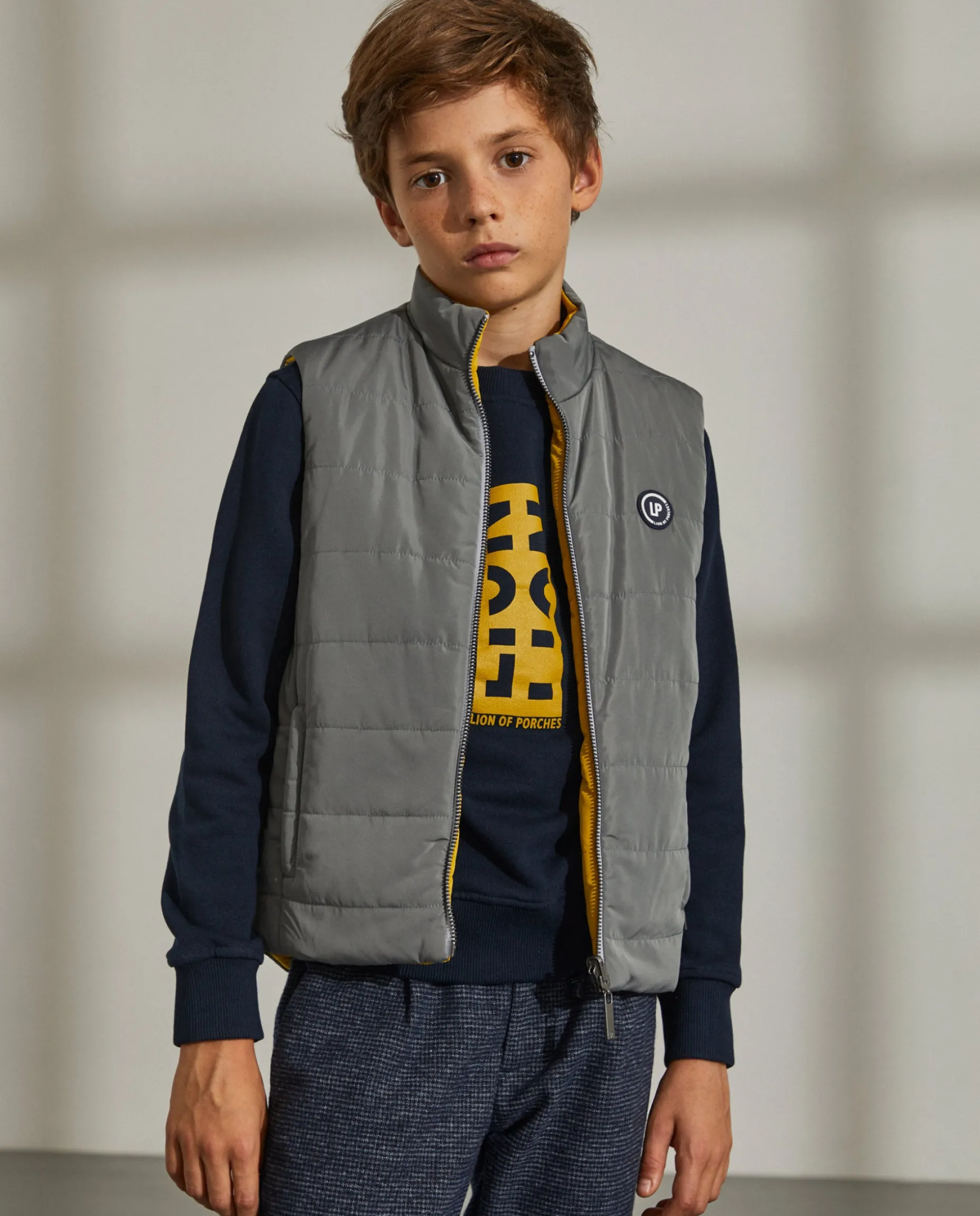 Complete o look dele com este colete reversível. Em tecido técnico, aperta com um fecho central reversível. Um lado conta com dois bolsos de fecho e o estampado Lion Of Porches no peito. O outro lado apresenta dois bolsos em vivo e emblema Lion Of Porches no peito.