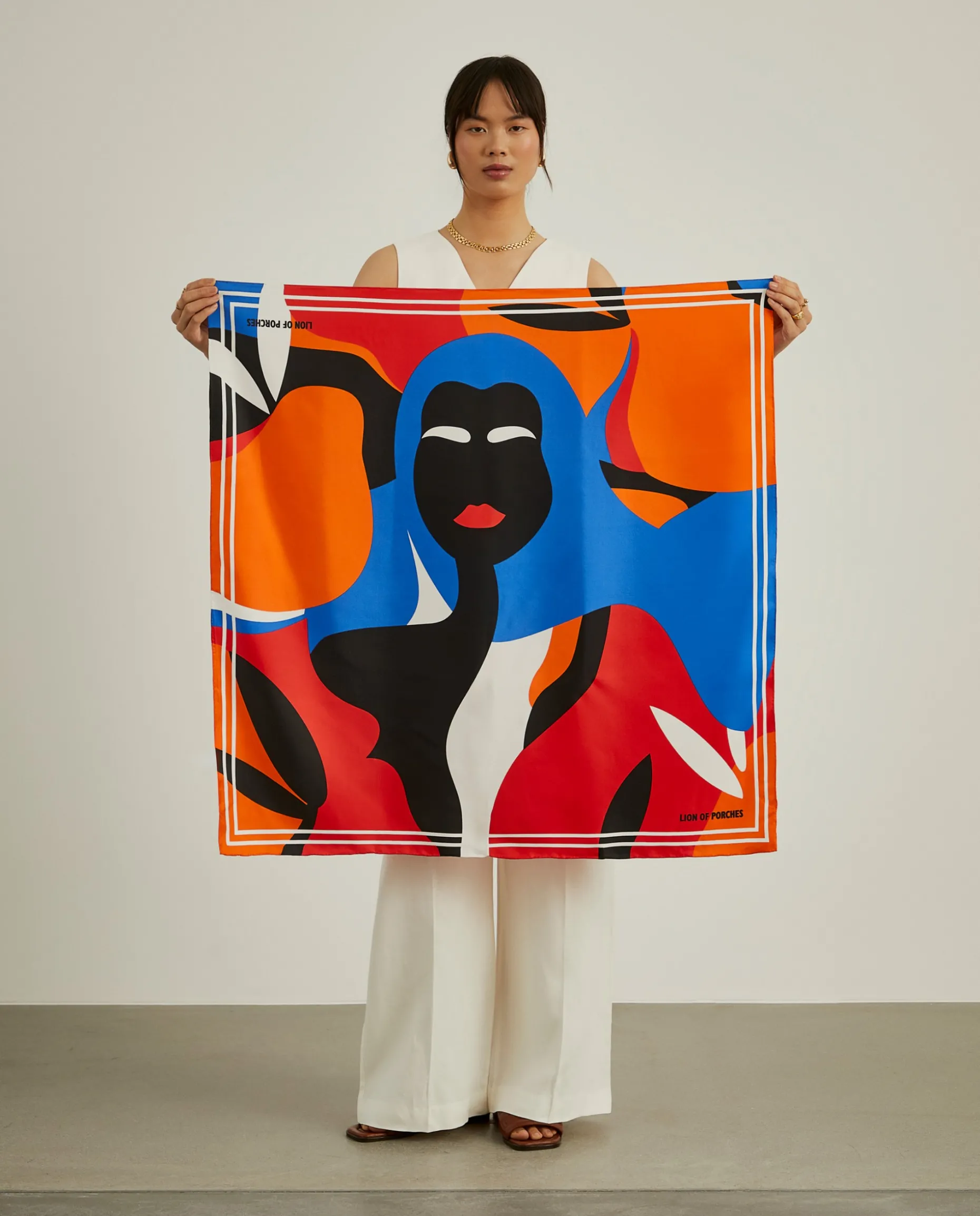 Adicione um toque colorido ao seu look com este lenço de seda com estampado colorido de mulher.