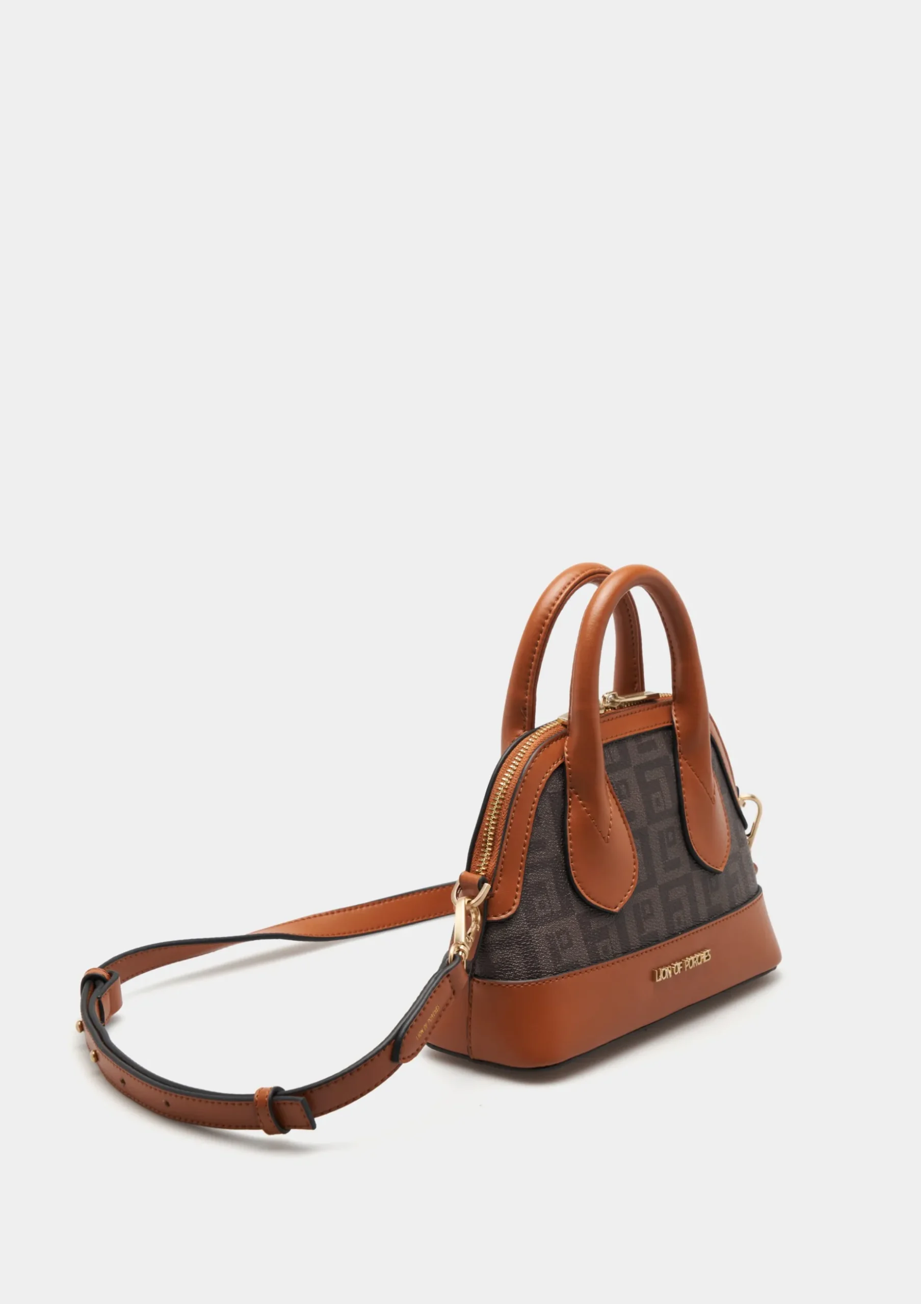 Adicione um toque de personalidade ao seu outfit com esta city bag com monograma estampado. Com contraste de cor na base, alças e parte do fecho. Tem dupla alça de mão fixa e outra alça longa ajustável e removível. Pormenor de penduro com forma de cavalo.