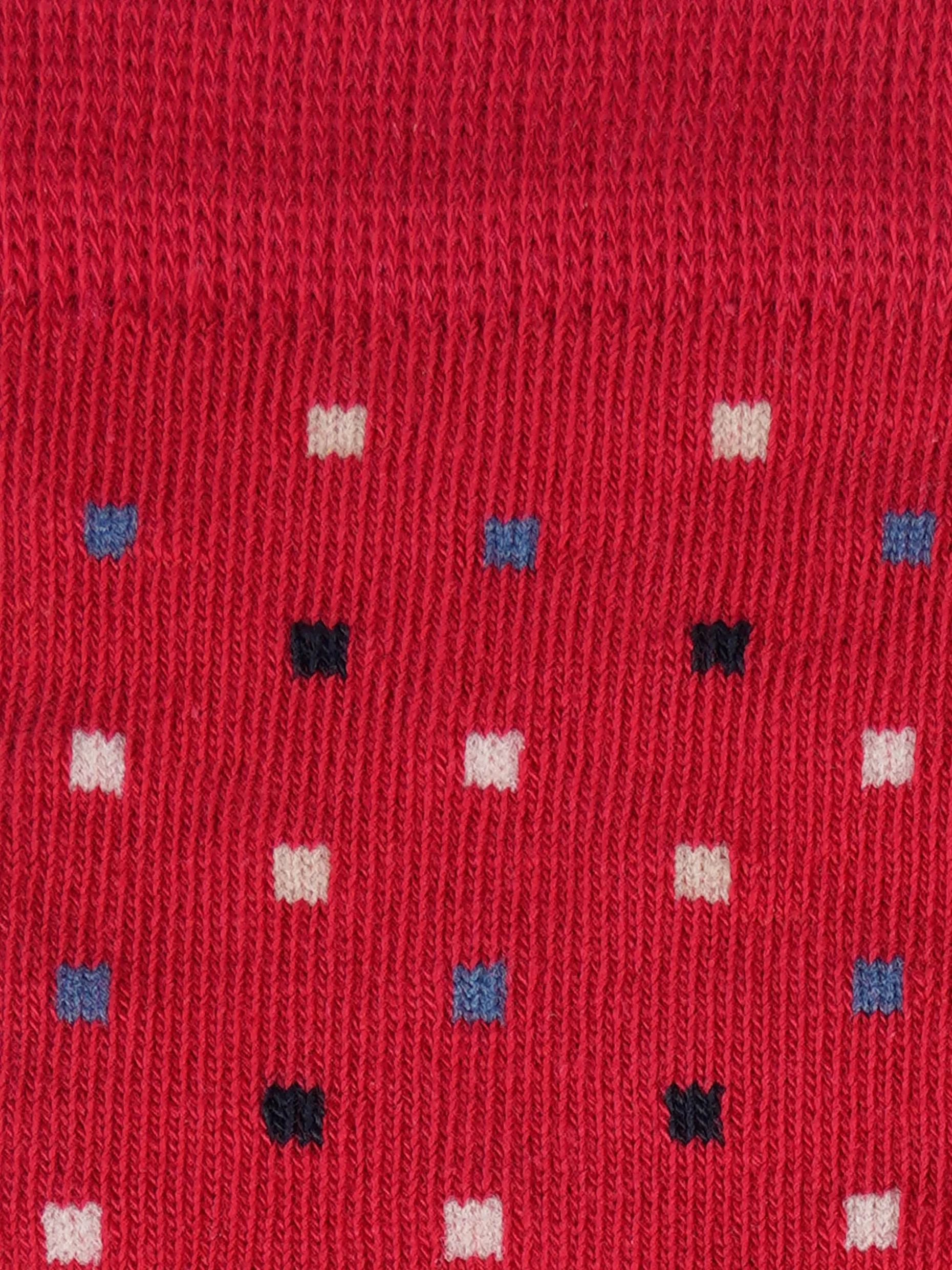 Meias confecionadas em algodão stretch com micromotivos quadrados.