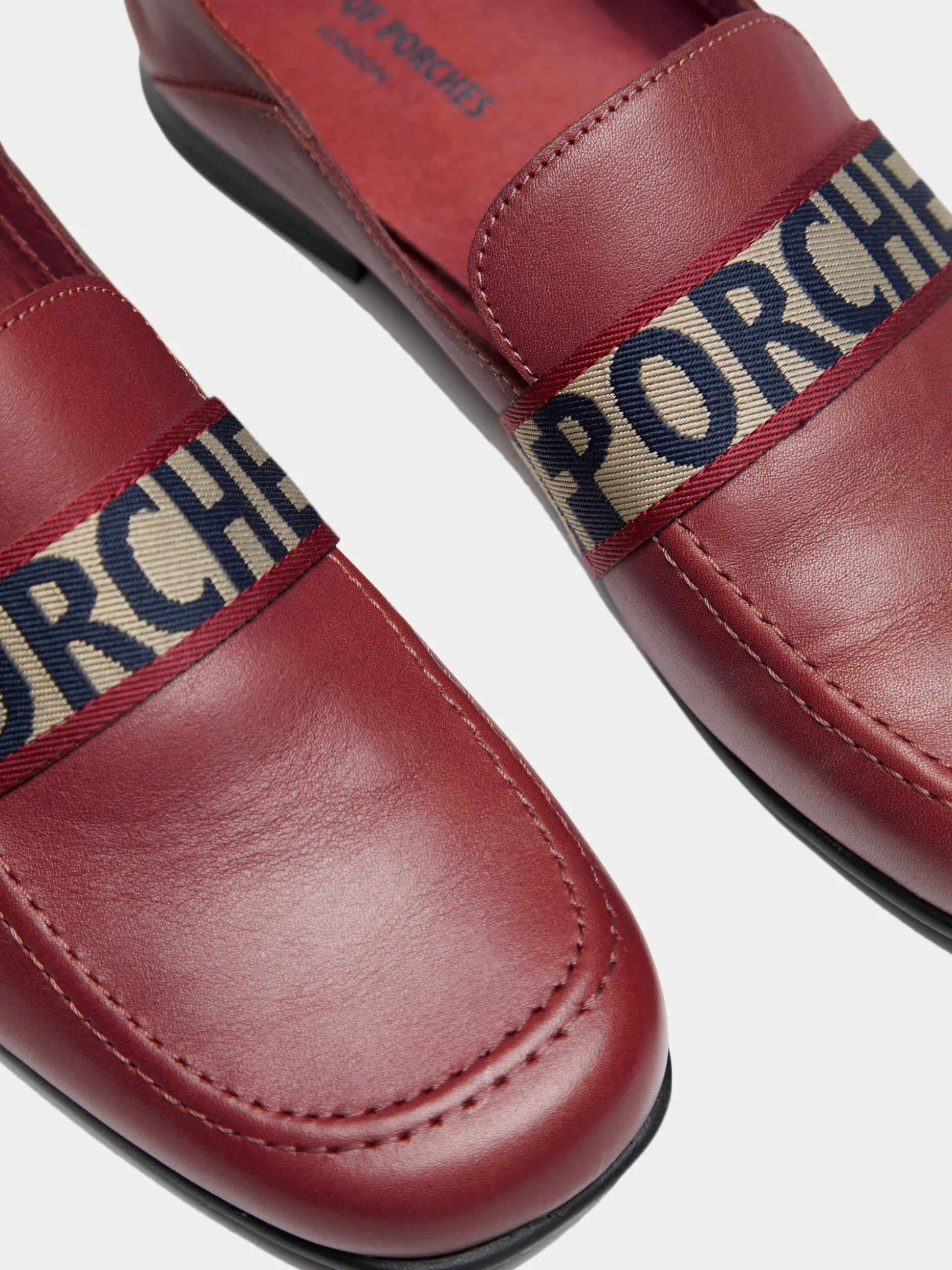 Mocassim em pele que se transforma em mule para usar conforme a ocasião. Com fita corporativa personalizada na frente a acompanhar a curvatura do pé.