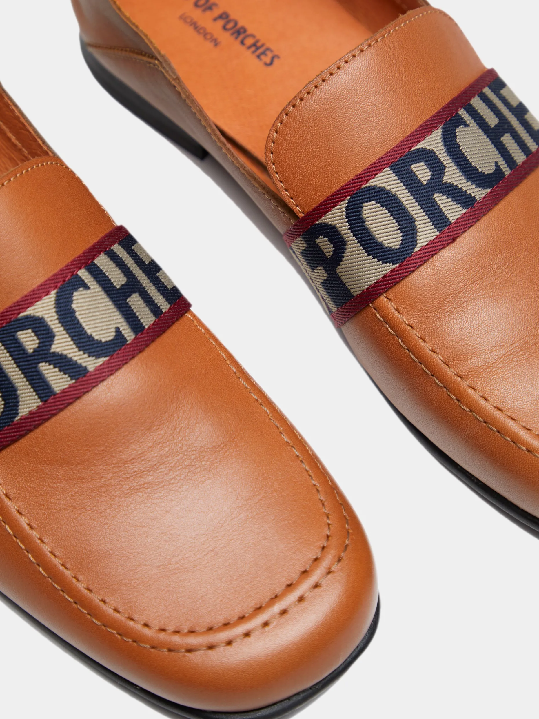 Mocassim em pele que se transforma em mule para usar conforme a ocasião. Com fita corporativa personalizada na frente a acompanhar a curvatura do pé.
