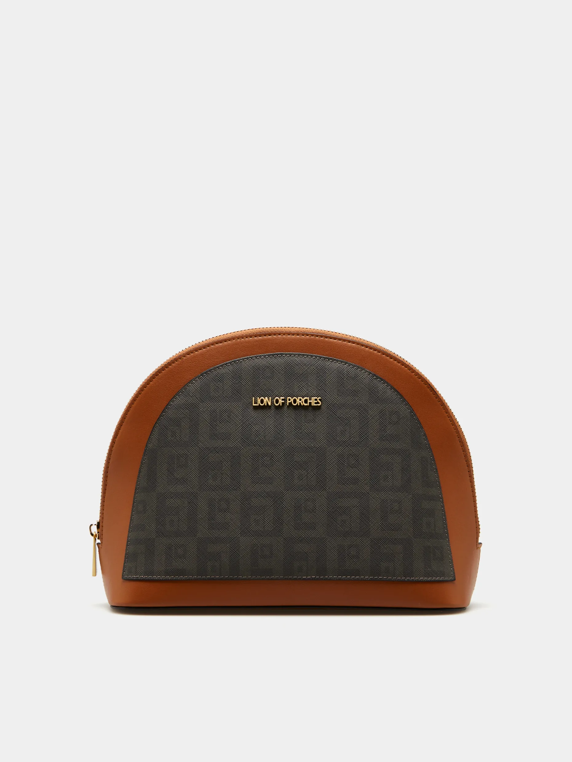 Necessaire com monograma da marca estampado no centro e logotipo dourado metálico. Perfeito para levar consigo apenas o essencial. Aperta no topo com fecho de correr com zíper personalizado. Produzido com matérias-primas vegan.