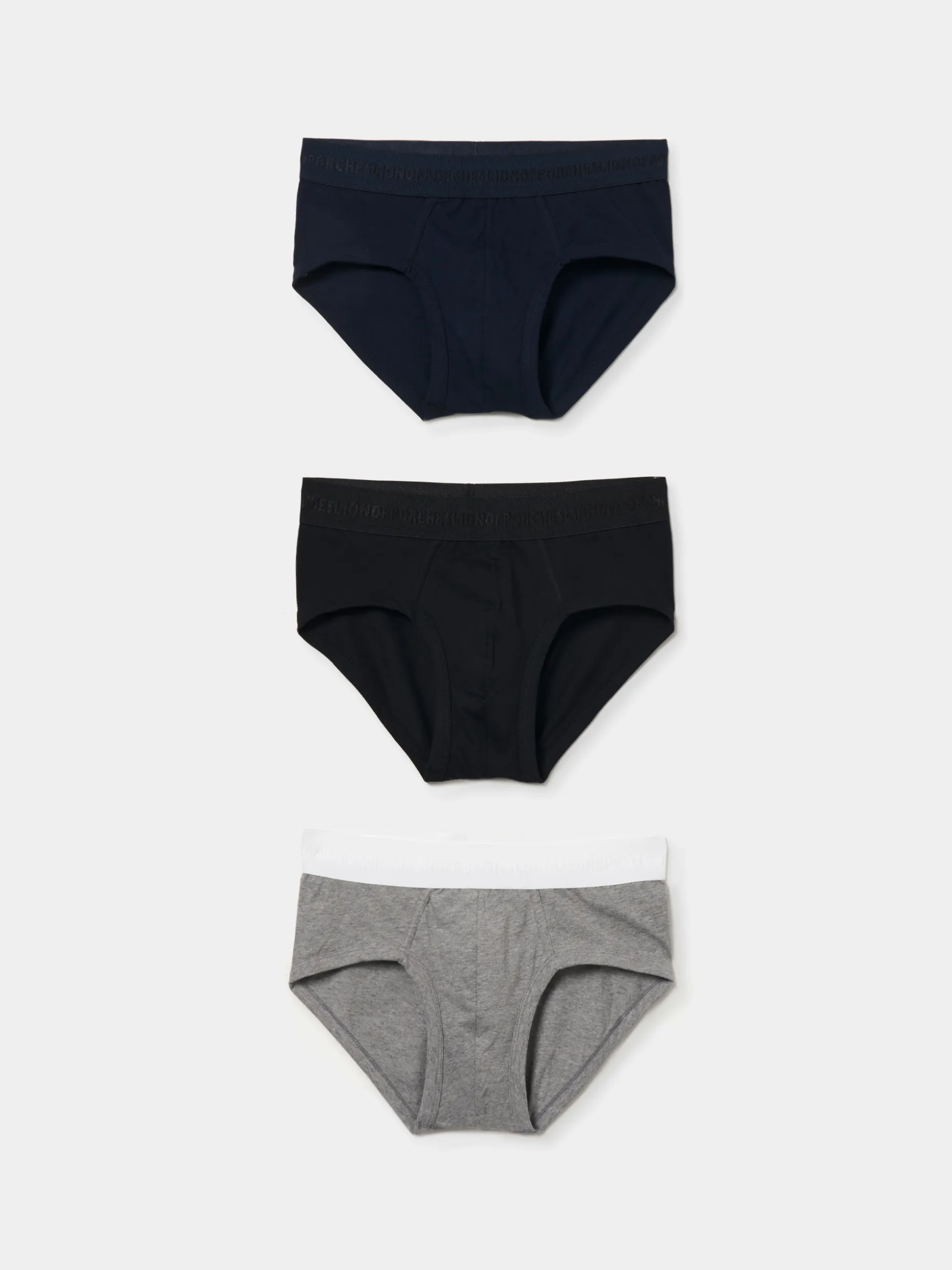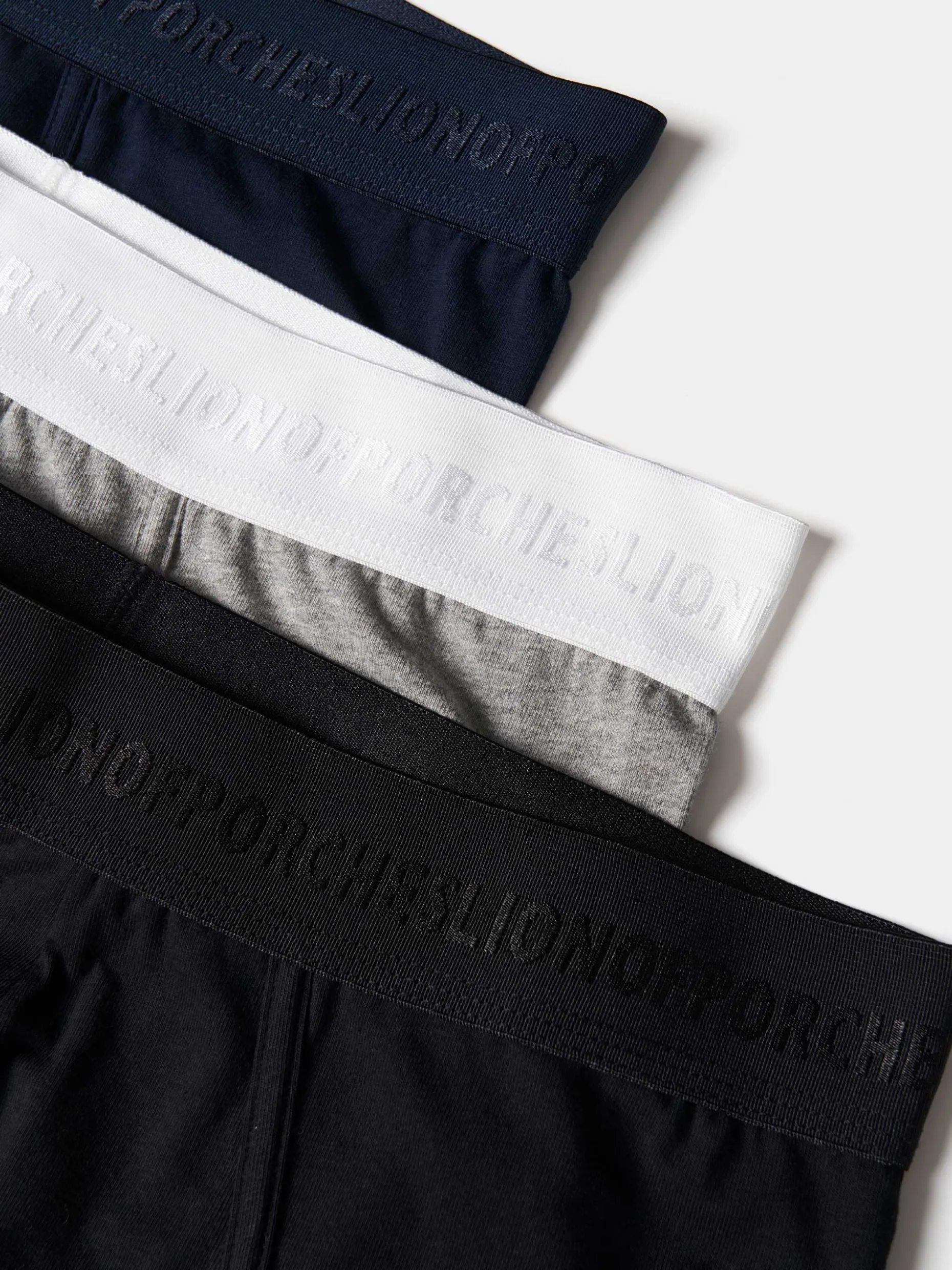Pack de 3 cuecas lisas, de diferentes cores. Confecionadas em algodão, são finalizadas com uma cintura elástica com o branding Lion of Porches.