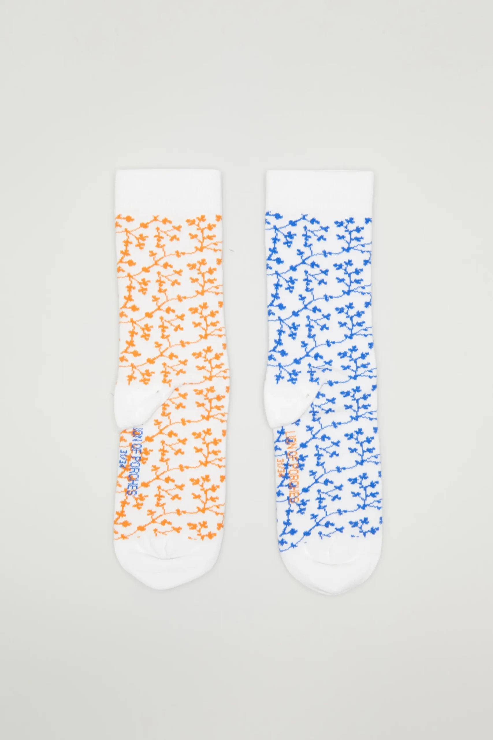 Pack de dois pares de meias com padrão jacquard floral, um de cada cor. Finaliza com branding Lion of Porches na parte de baixo.