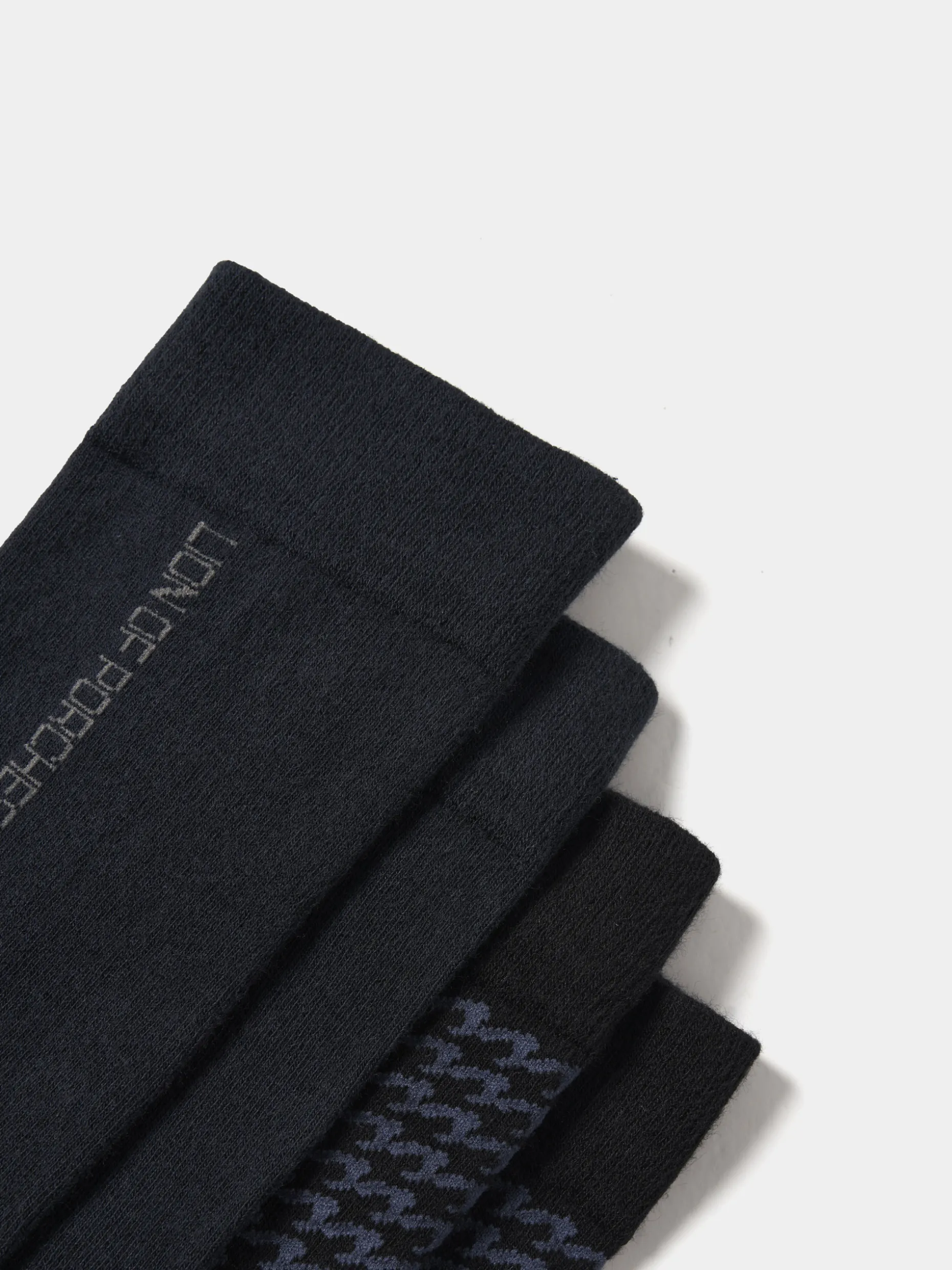 Pack de dois pares meias com diferentes padrões.. Biqueira em contraste de cor.