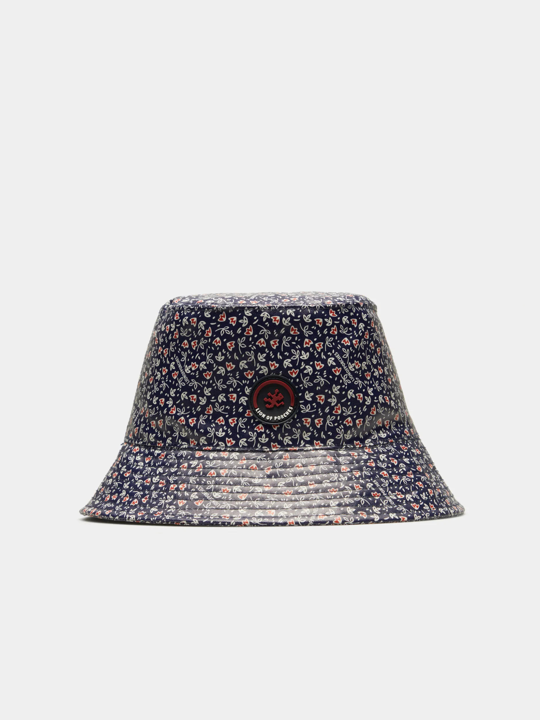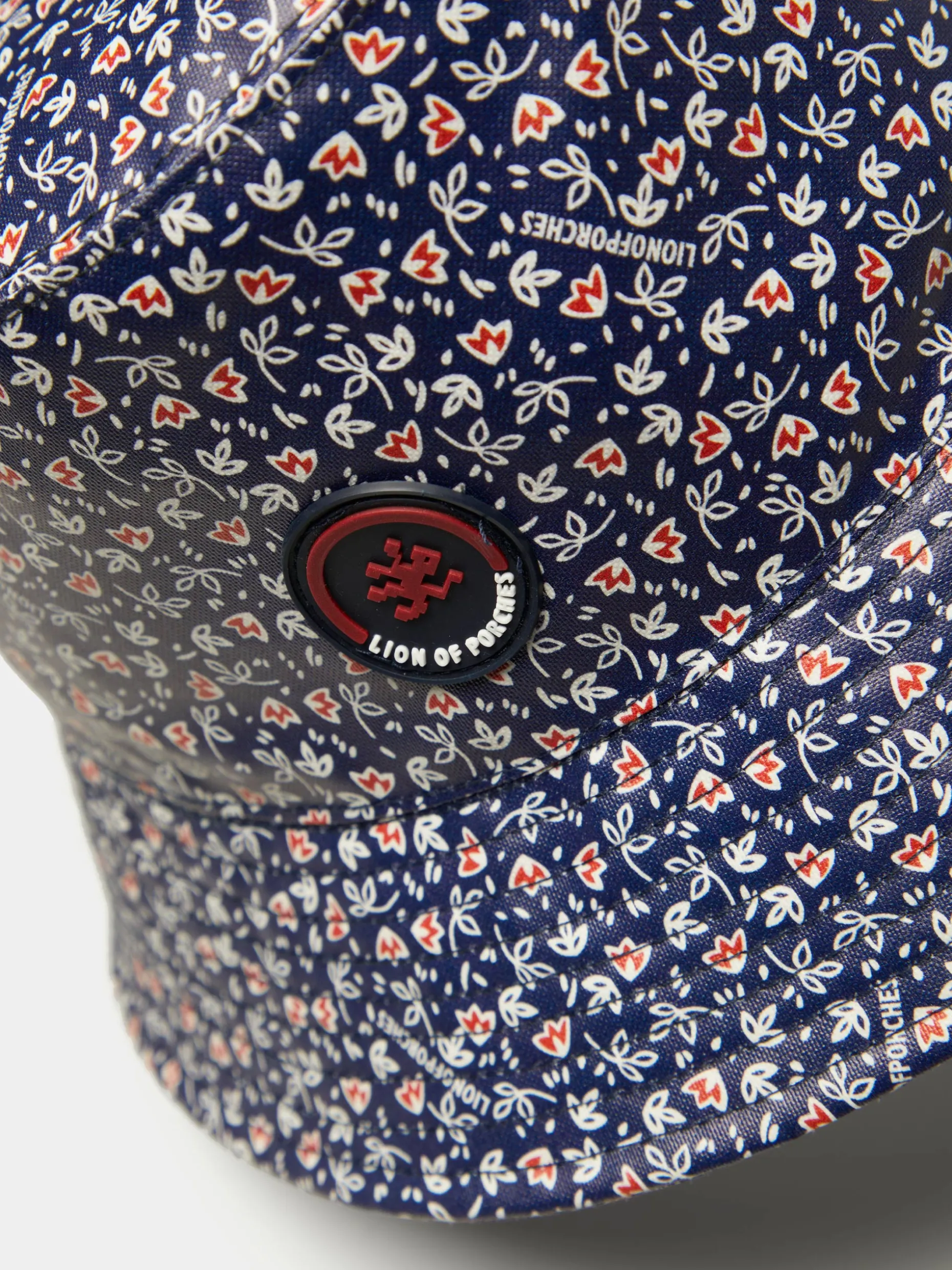 Panamá com estampado personalizado com etiqueta de borracha redonda personalizada na frente.