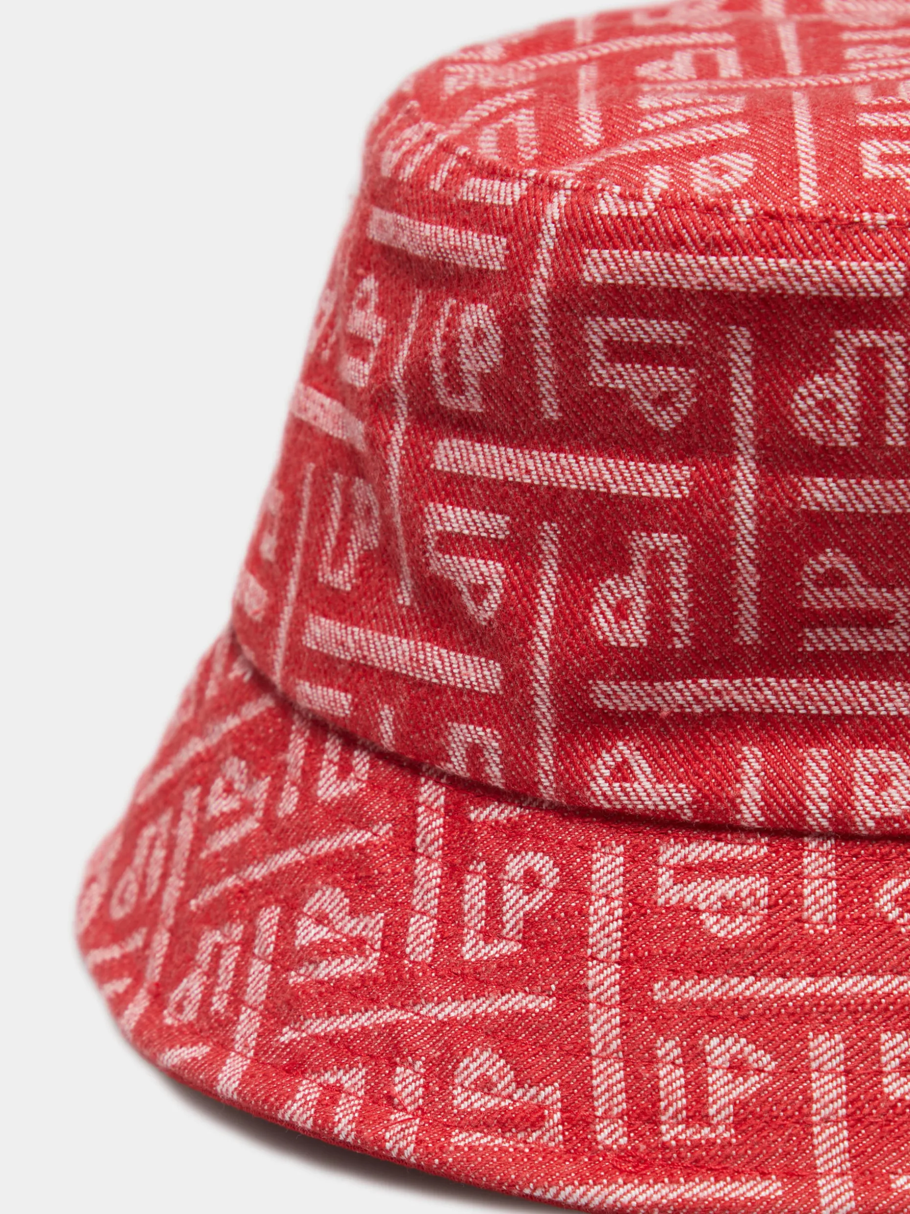 Panamá com relevo de monograma. Etiqueta em pele com branding. Confecionado e mistura de algodão.