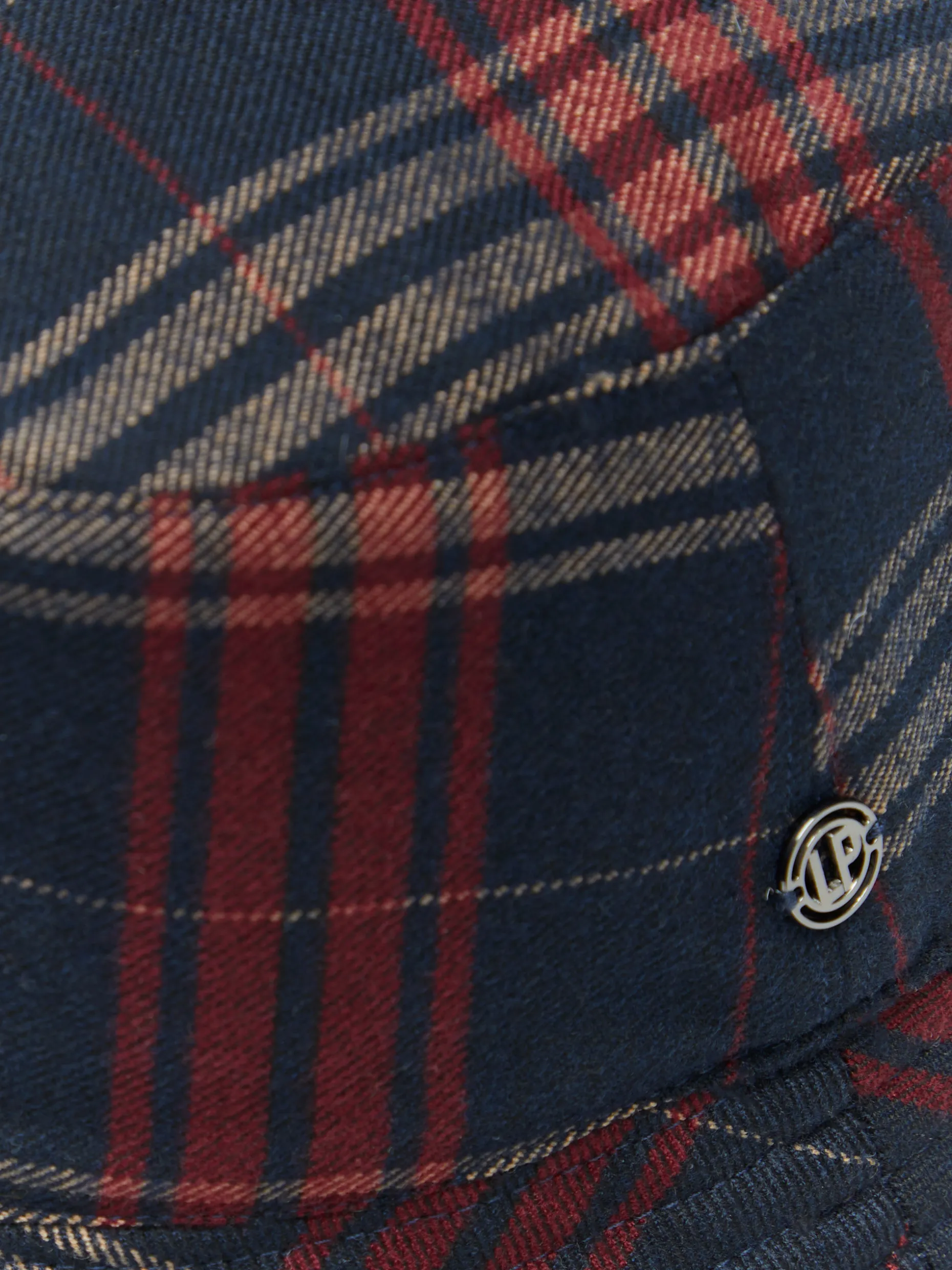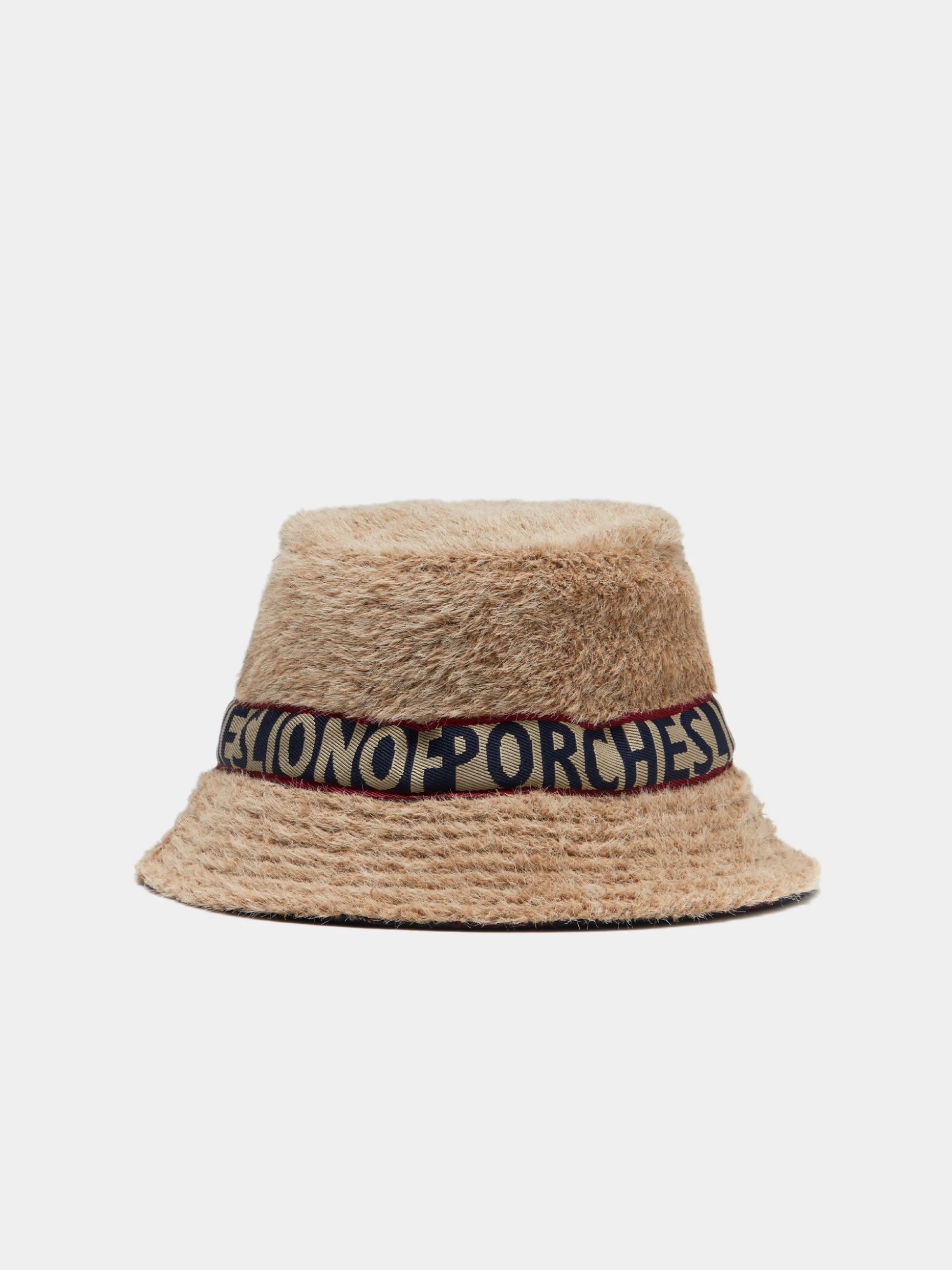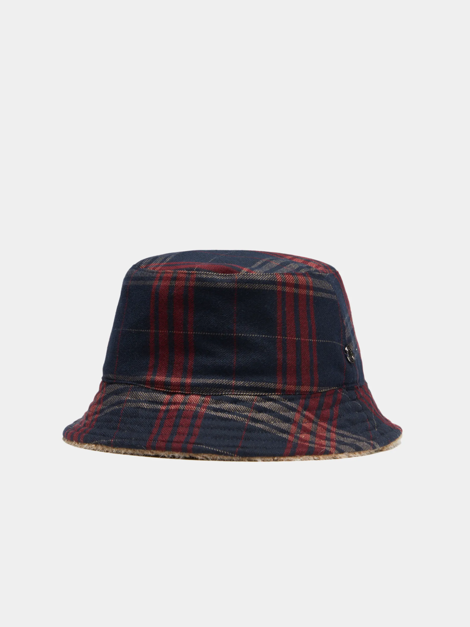 Panamá reversível com pelo. Uma face em pelo com fita personalizada e a outra face em xadrez.