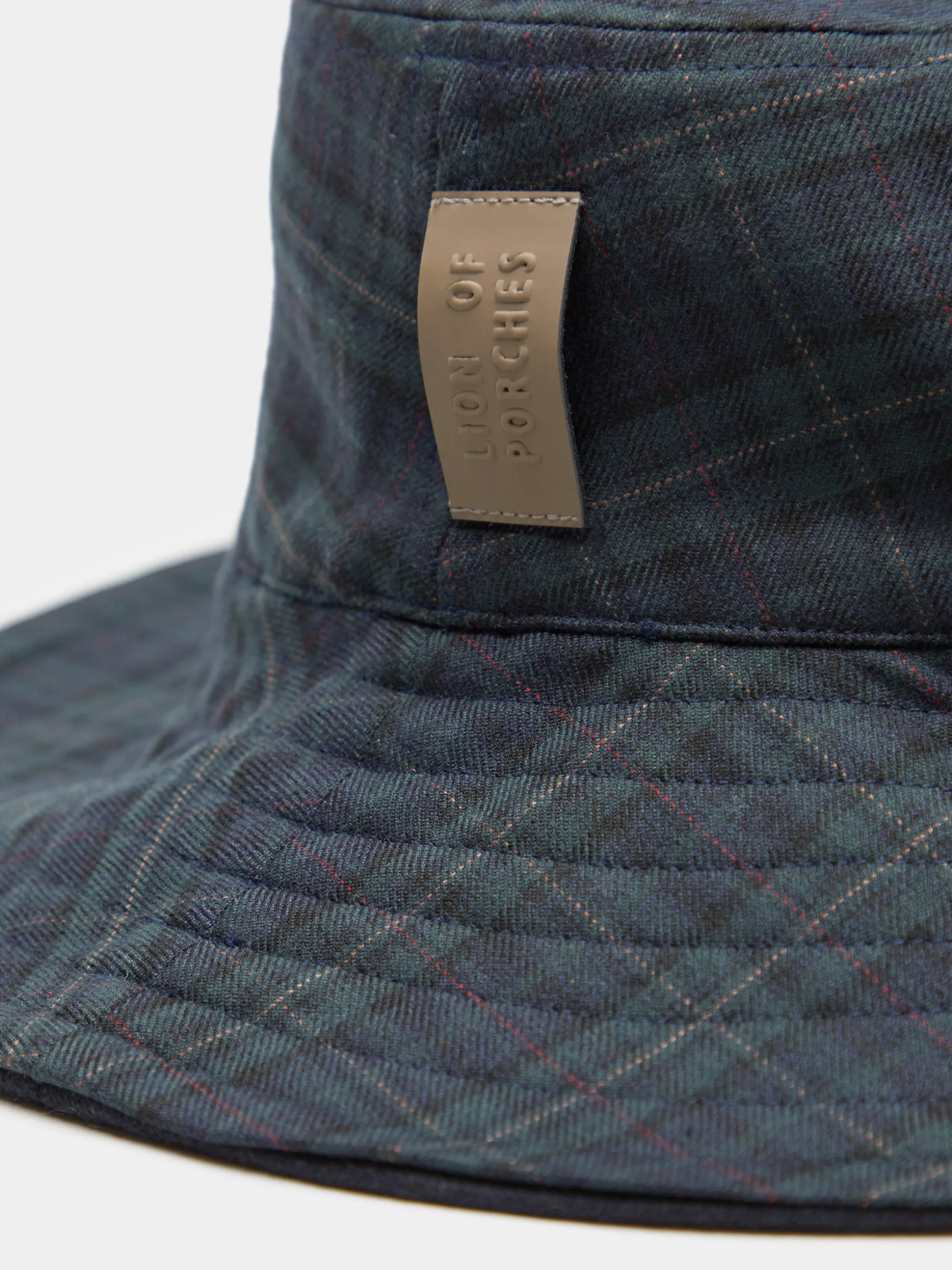 Panamá reversível com uma face em xadrêz e a outra face lisa. Confecionado com lã e mohair.