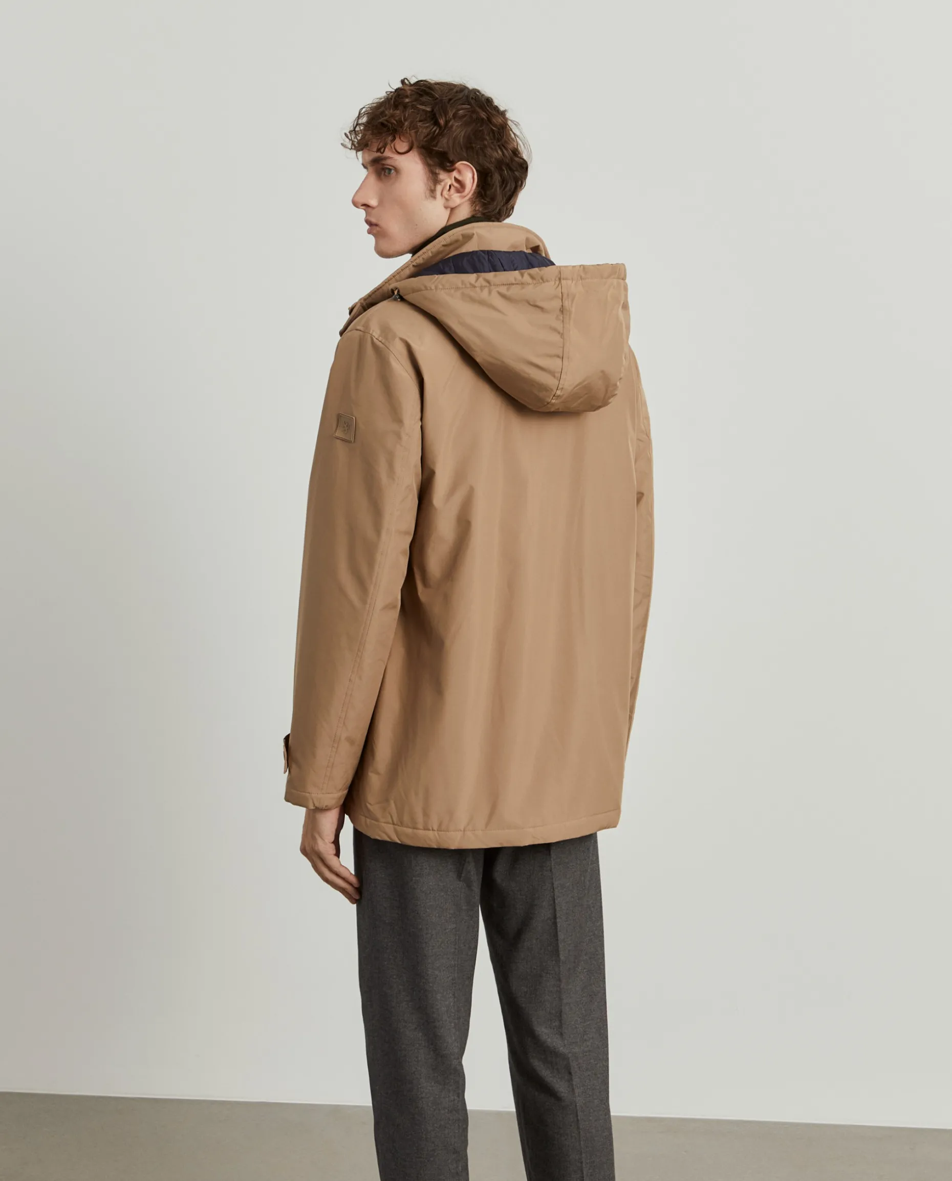 Parka acolchoada com capuz. Aperta com fecho e molas. Emblema Lion Of Porches na manga esquerda. Dois bolsos na frente e dois bolsos de fecho no interior.