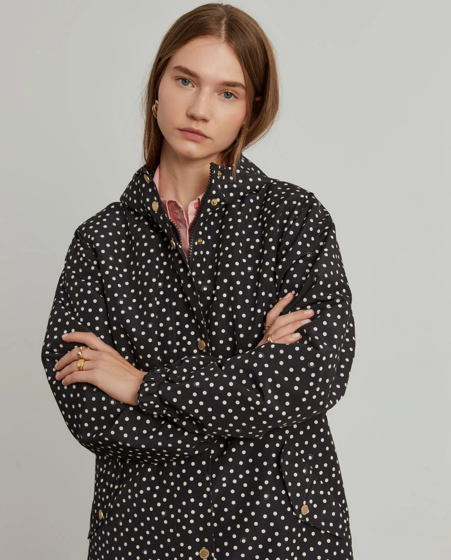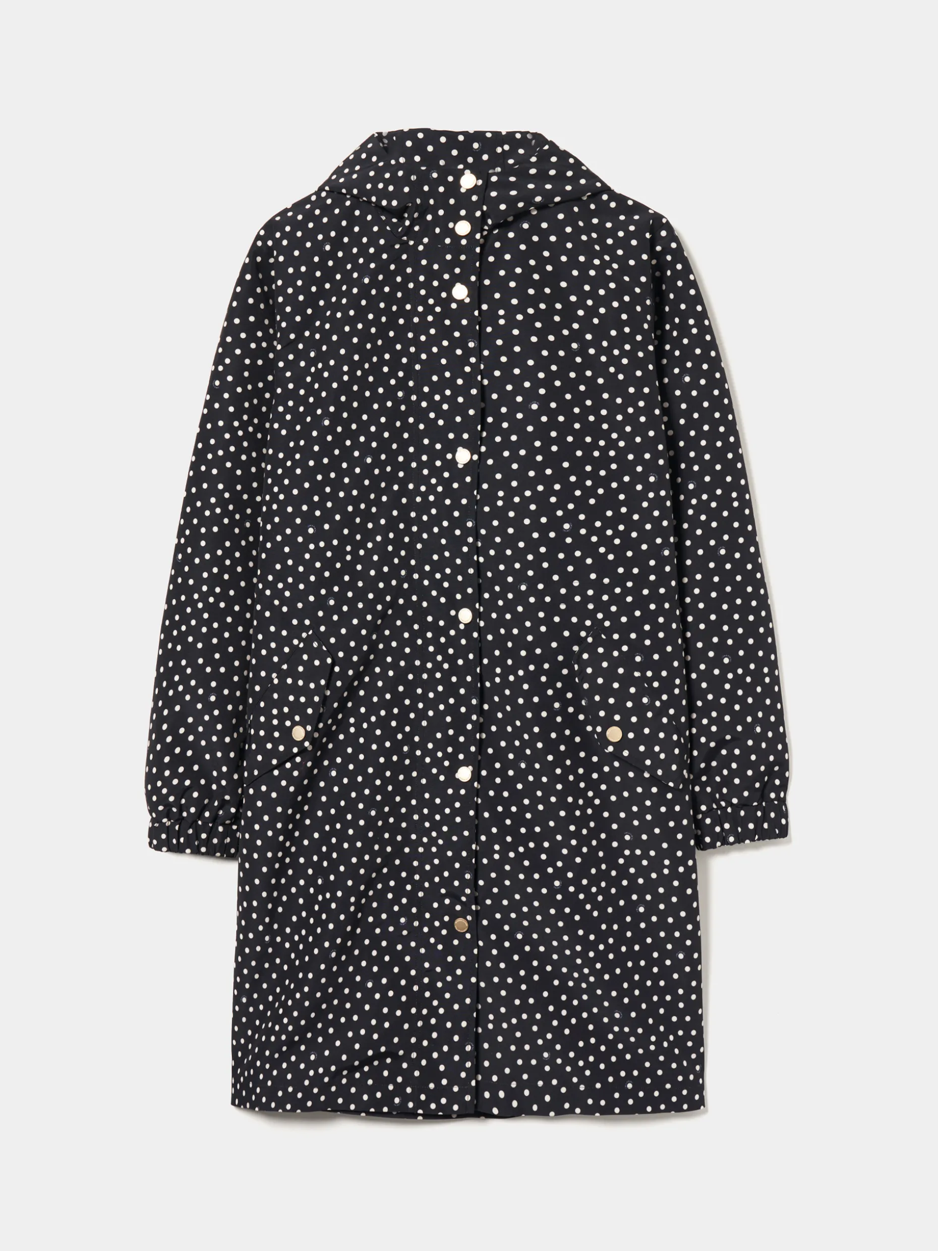 Proteja-se da chuva e do vento com esta parka comprida com padrão polka dots. Tem capuz e bolsos frontais e aperta através de molas. Os punhos são elásticos.