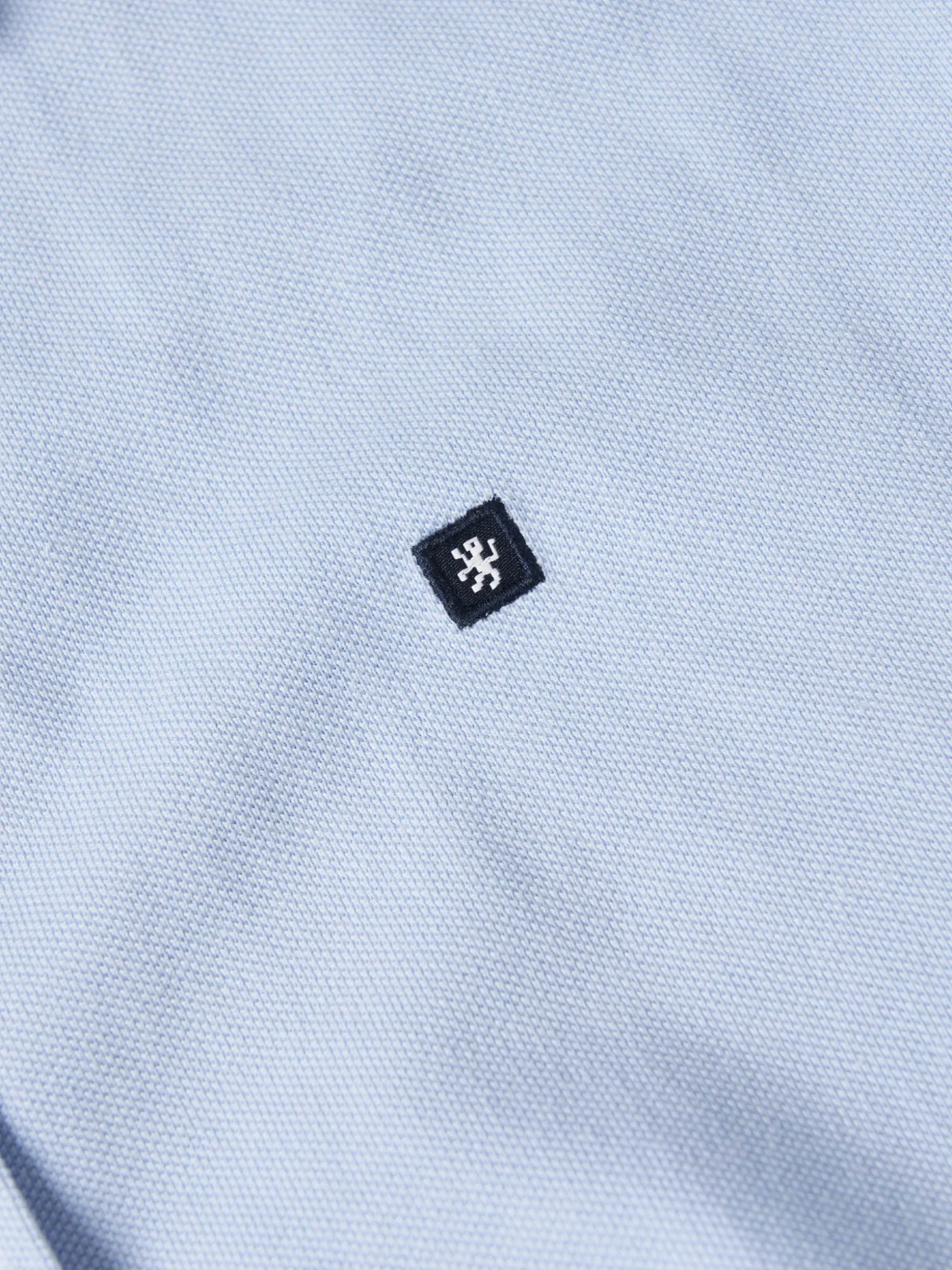 Um clássico com um twist. Polo camisa em piqué que aperta na frente com botões até à base. Outro pormenor diferenciador é a risca em contraste nas extremidades da gola e das mangas. Finaliza com logotipo da marca no peito.