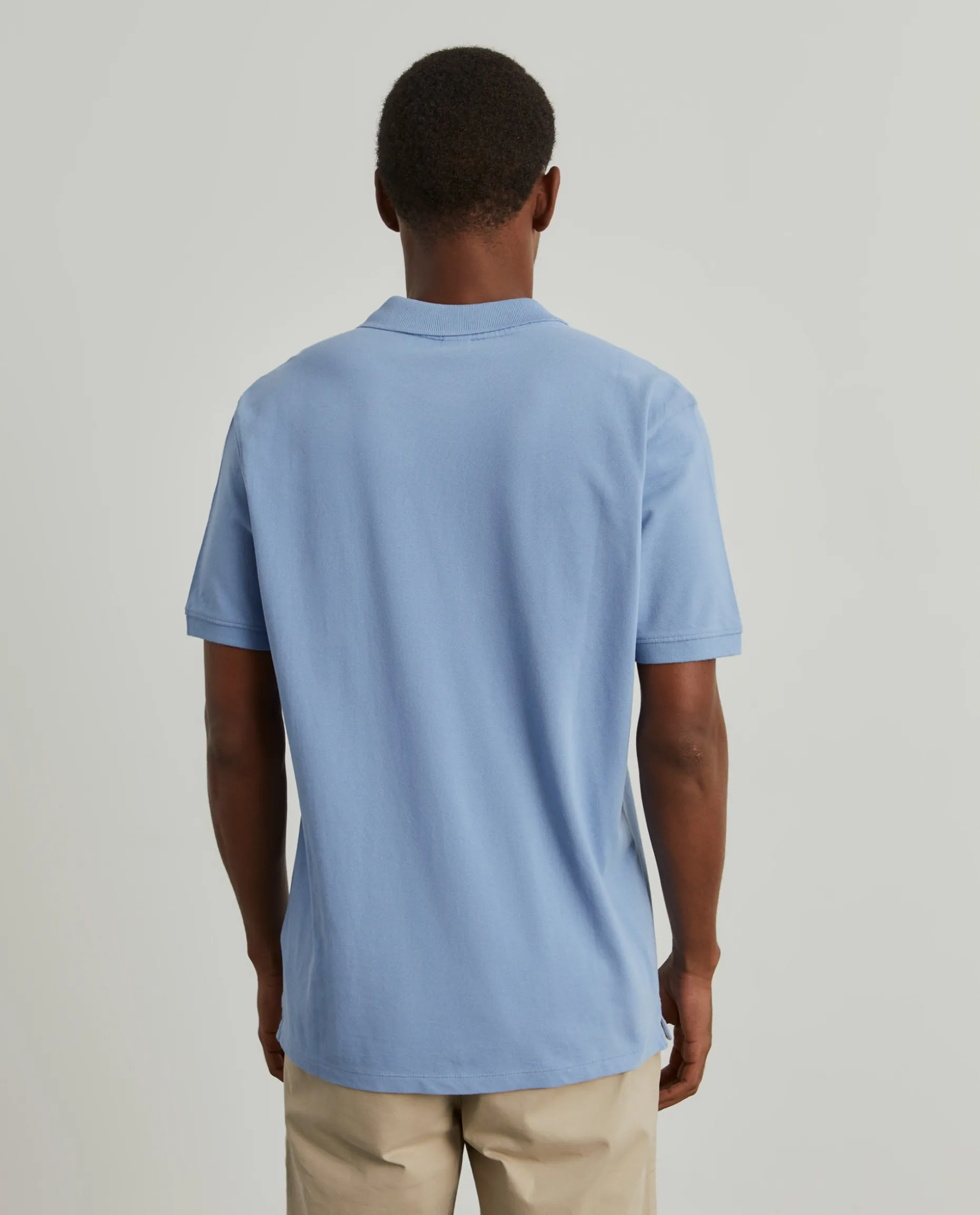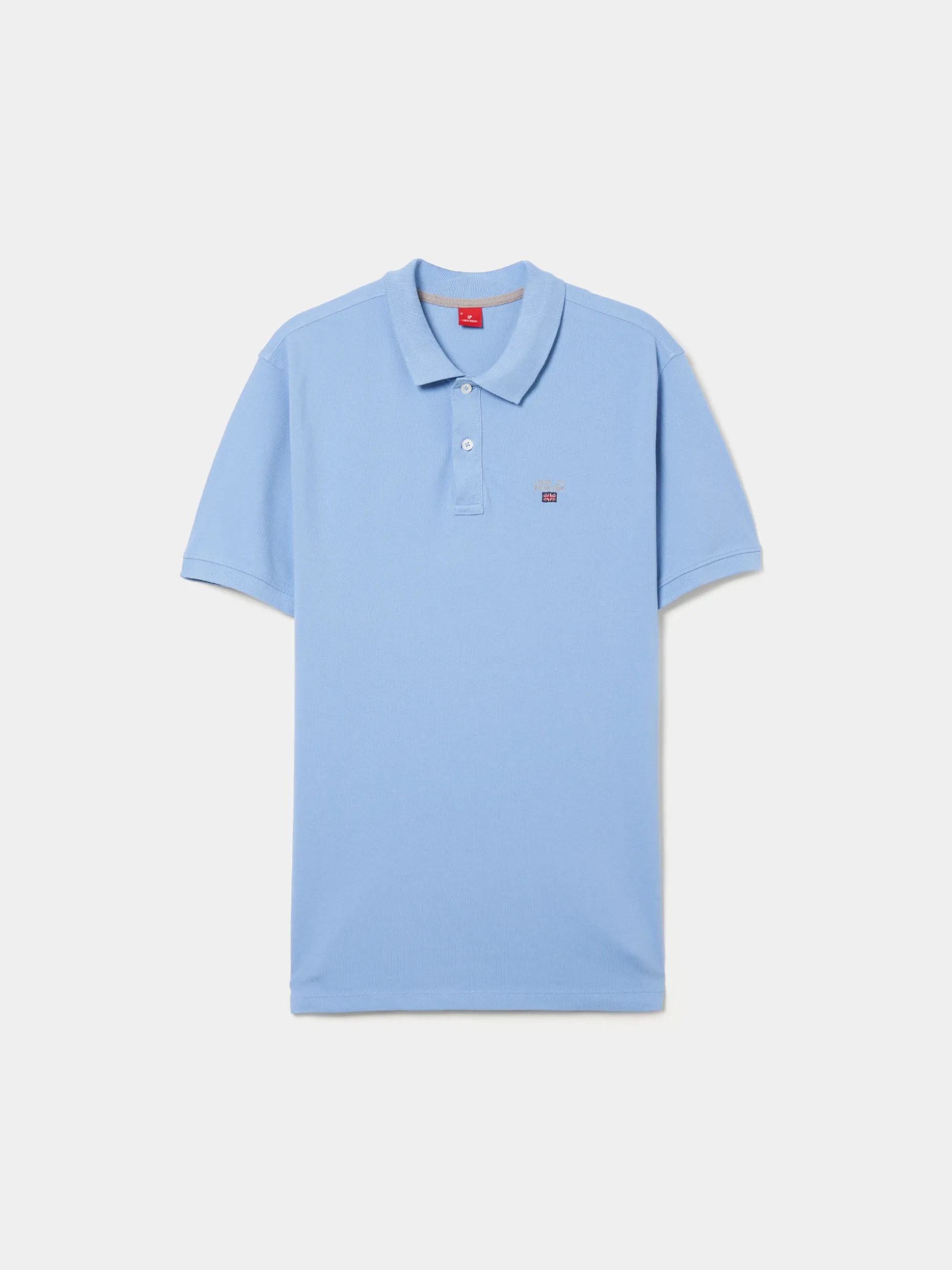 Polo regular fit de manga curta confecionado em 100% algodão. Aperta com dois botões no peito. Manga e gola canelada em contraste. Branding Lion of Porches no peito.
