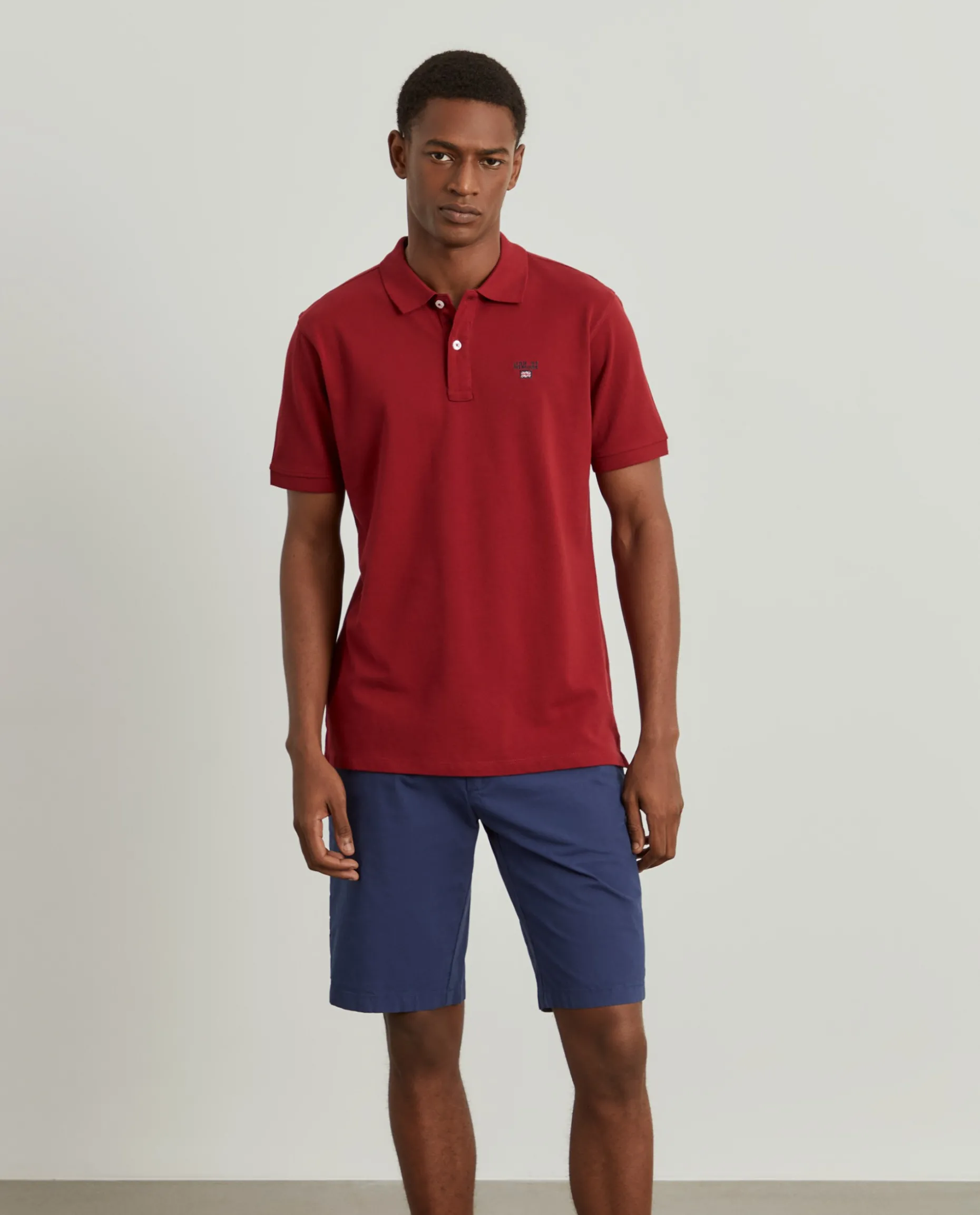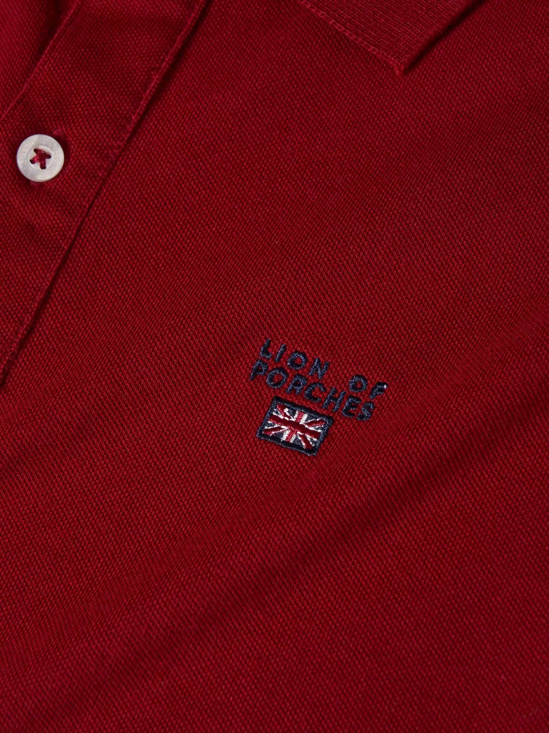 Polo regular fit de manga curta confecionado em 100% algodão. Aperta com dois botões no peito. Manga e gola canelada em contraste. Branding Lion of Porches no peito.