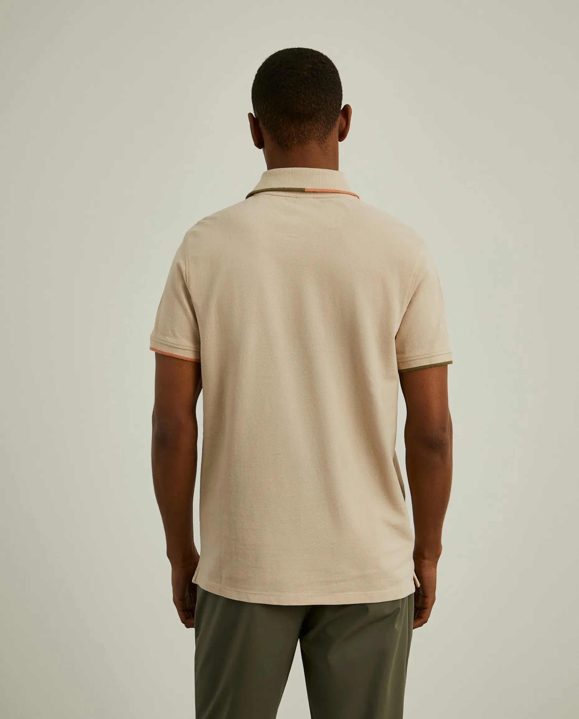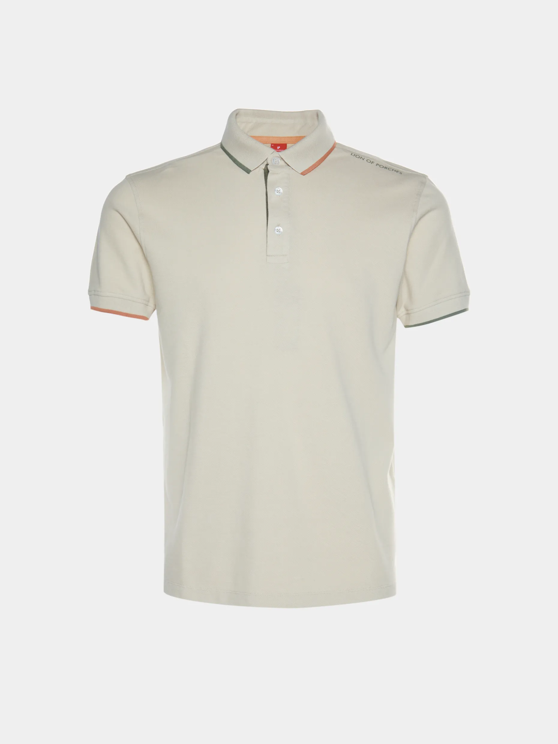Polo slim fit de manga curta com estampado Lion of Porches em contraste no ombro. Gola, mangas e interior da carcela com riscas em contraste.