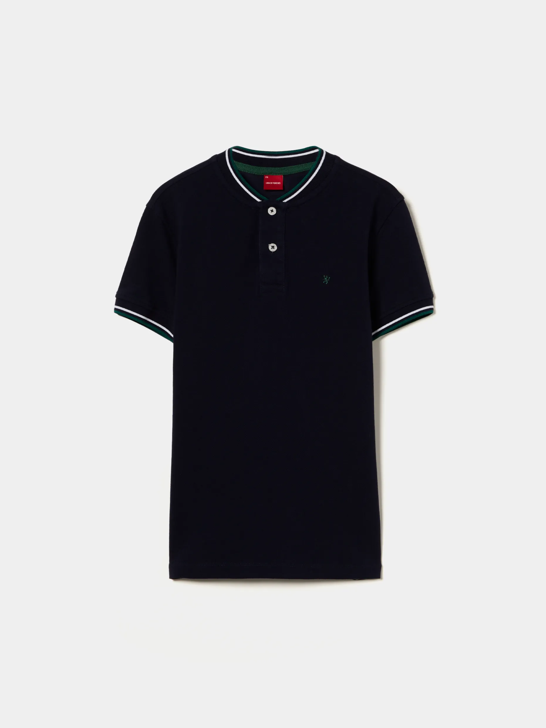 Para miúdos cheios de estilo propomos este polo slim fit de manga curta. Tem dois botões na gola e pormenor diferenciador de riscas em contraste, tanto na gola, como nas mangas. Finaliza com leão da marca bordado em contraste no peito.