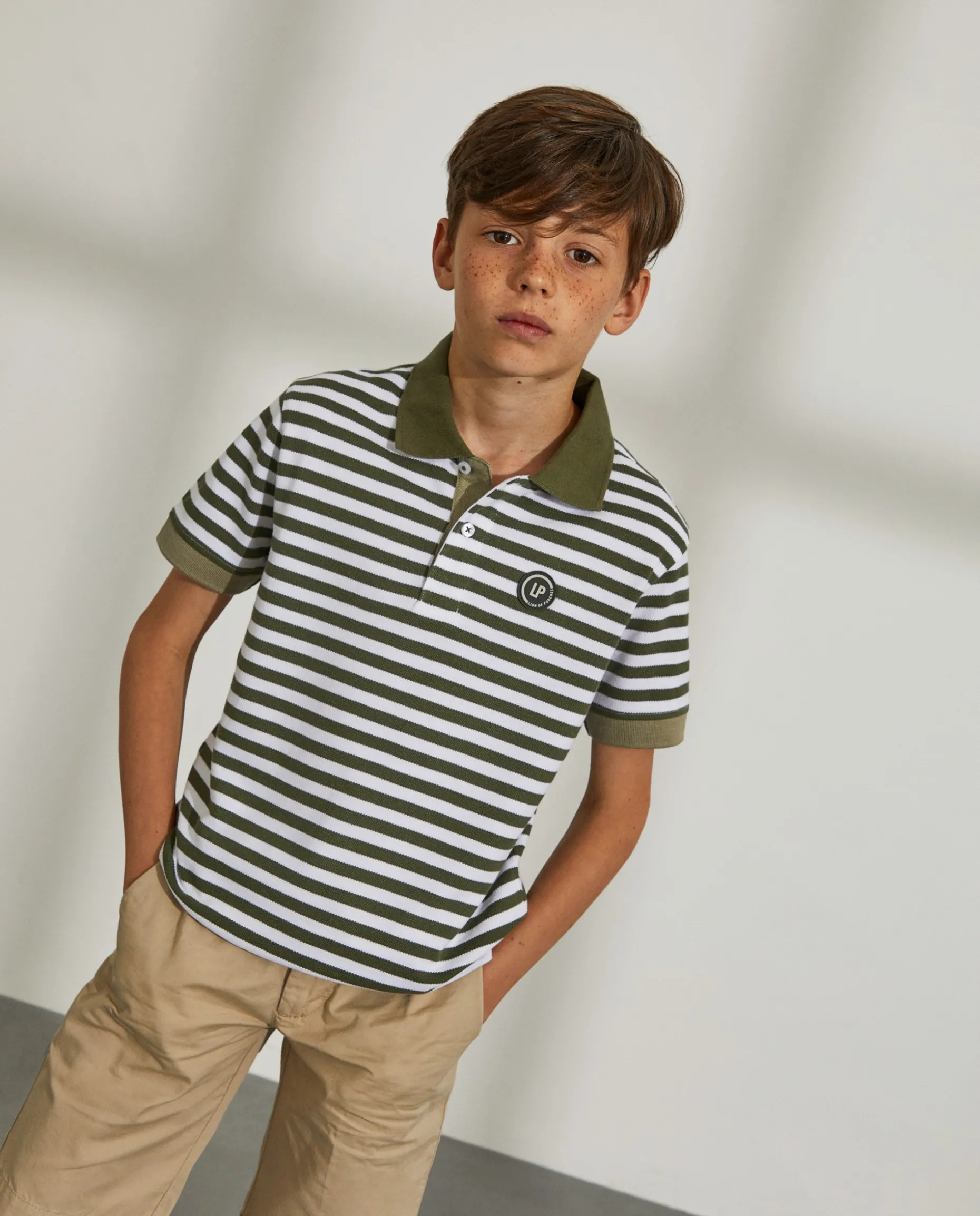 Pólo manga curta riscador. Tapa costuras, interior das rachas e interior da carcela em contraste. Etiqueta de borracha redonda personalizada no peito. Gola e punhos em contraste.