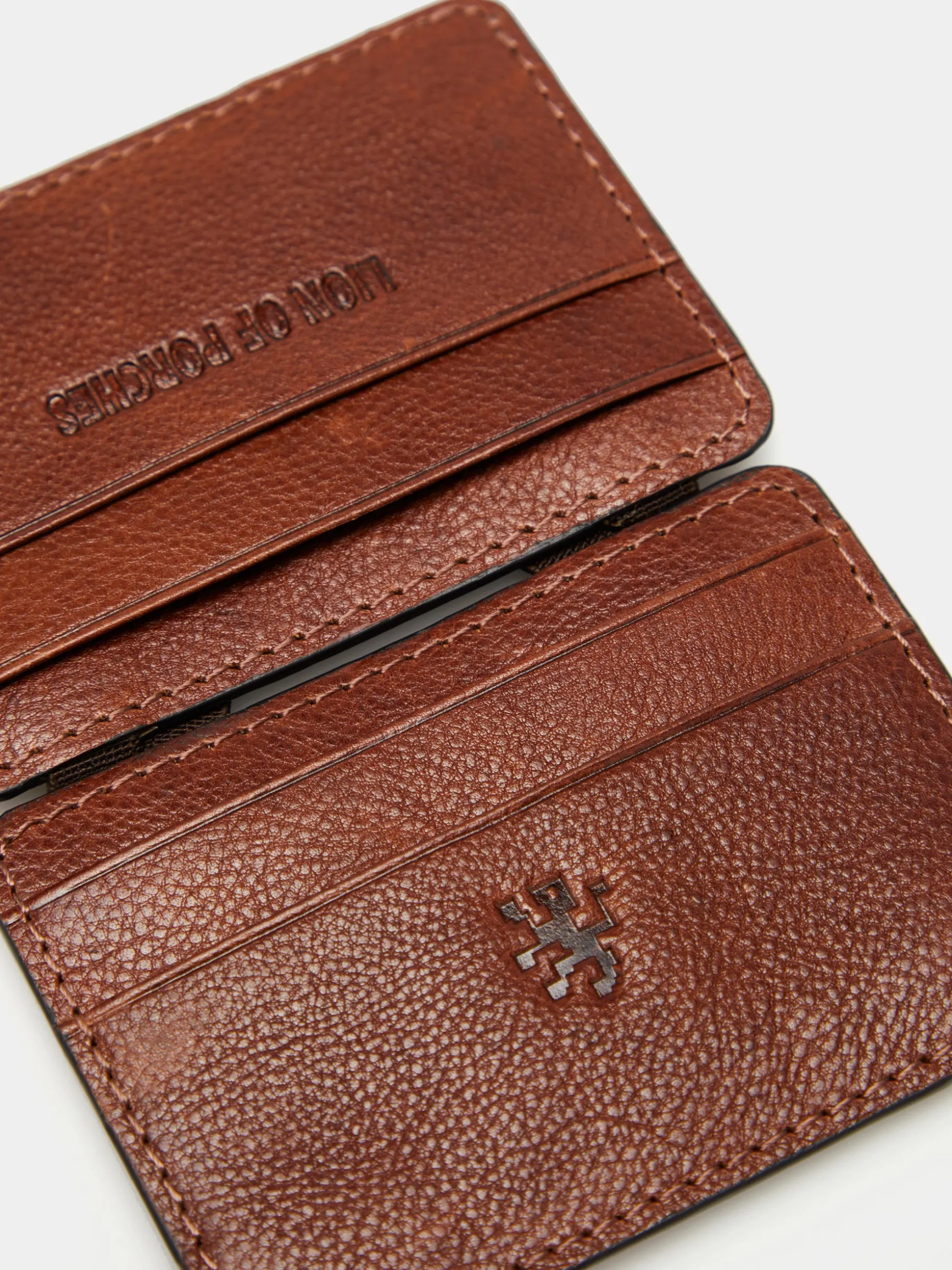 Carteira 100% pele com detalhe de elástico e quatro ranhuras para cartões. Logotipos gravados e fita corporativa.