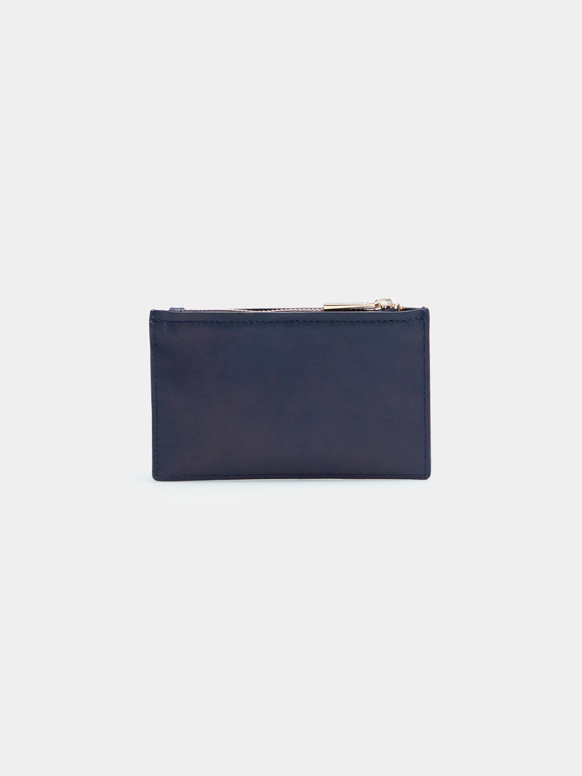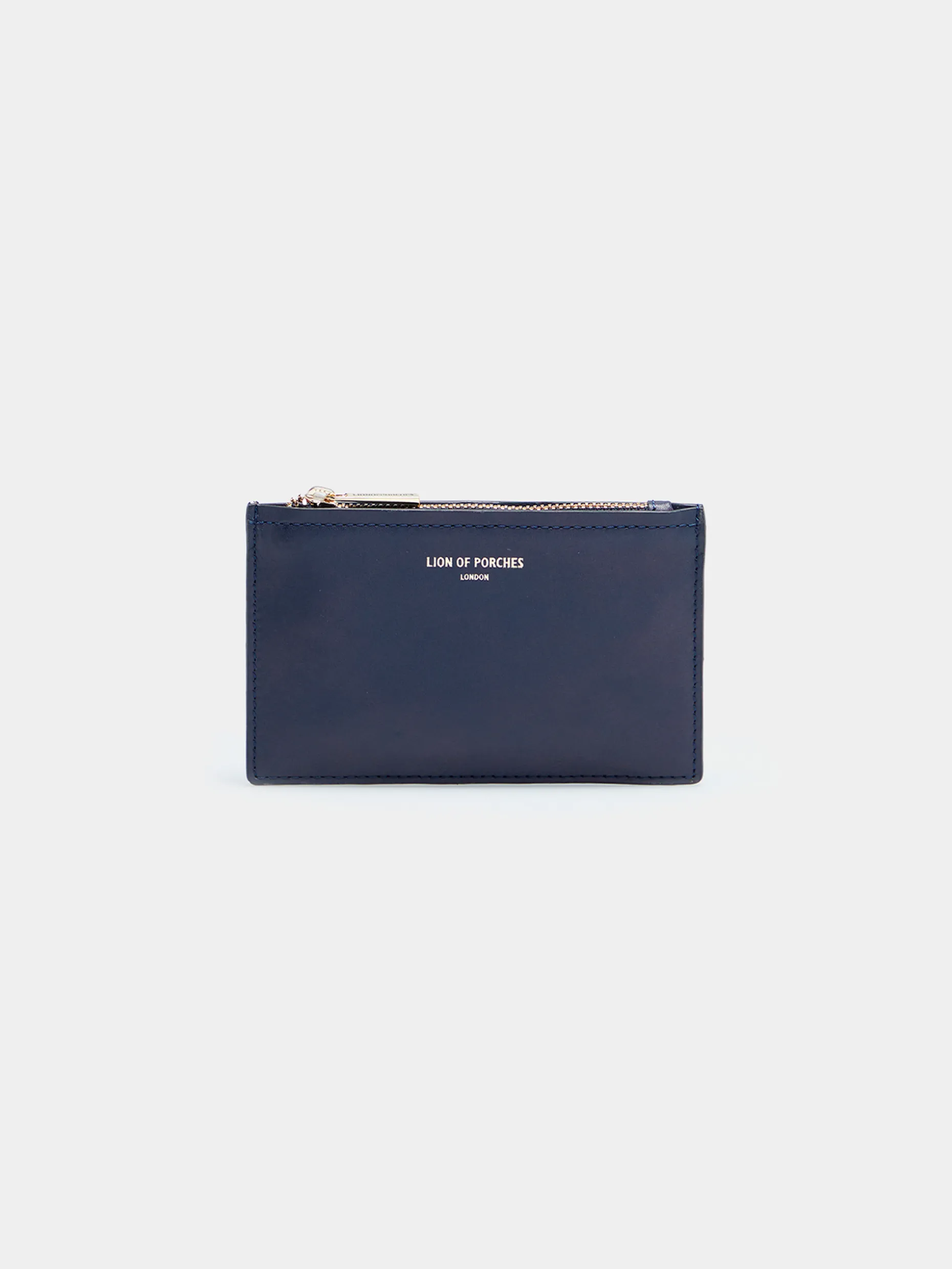 Porta-moedas retangular 100% pele com pespontos em contraste. Logotipo Lion of Porches estampado a dourado na frente e fecho com zíper personalizado.