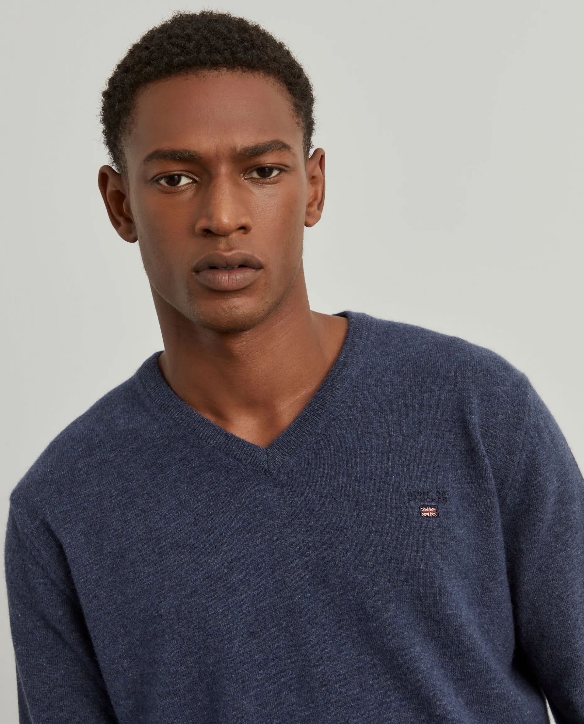 Complemente o seu guarda-roupa de essenciais com este pullover de manga comprida com decote em V. Disponível em várias cores e confecionado com uma mistura de lã que confere à peça um maior isolamento térmico. Em malha canelada nas extremidades.