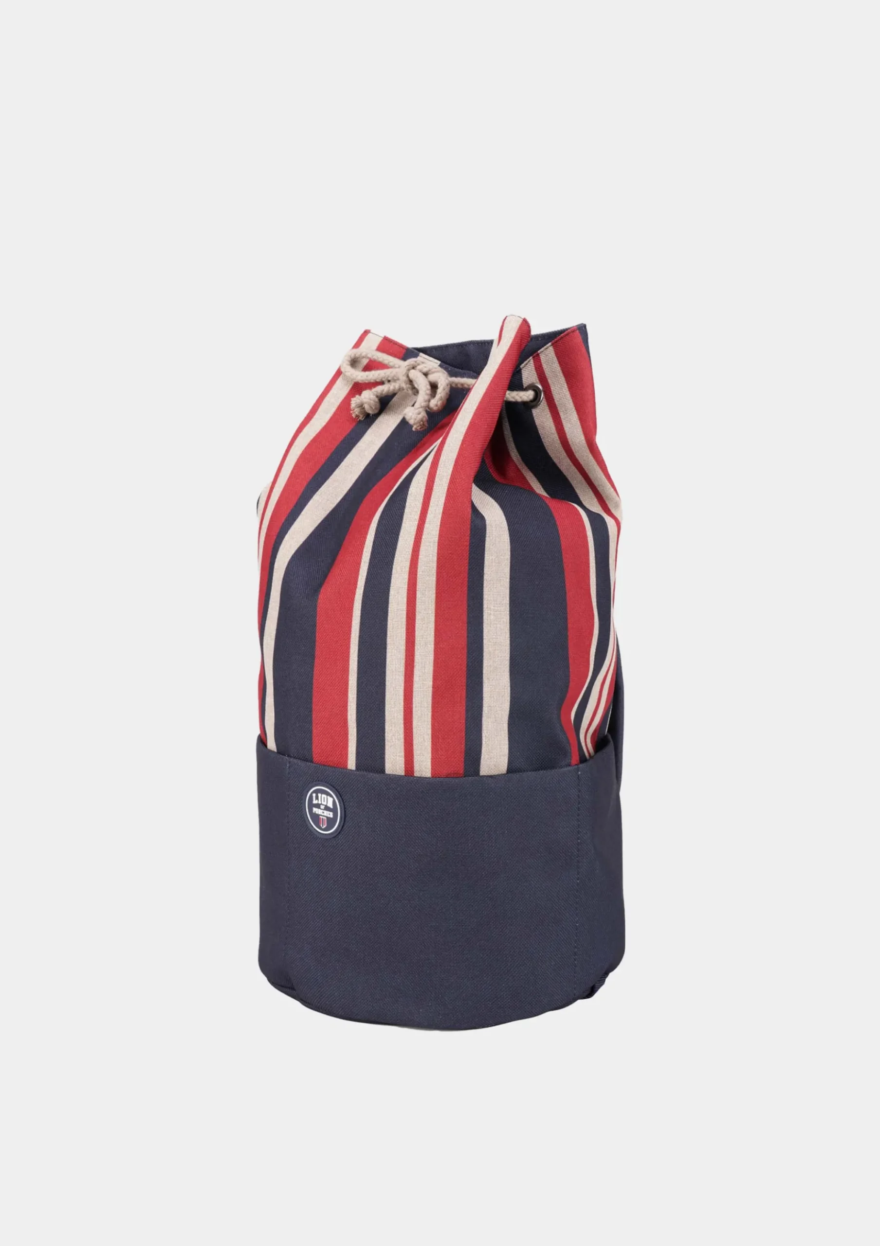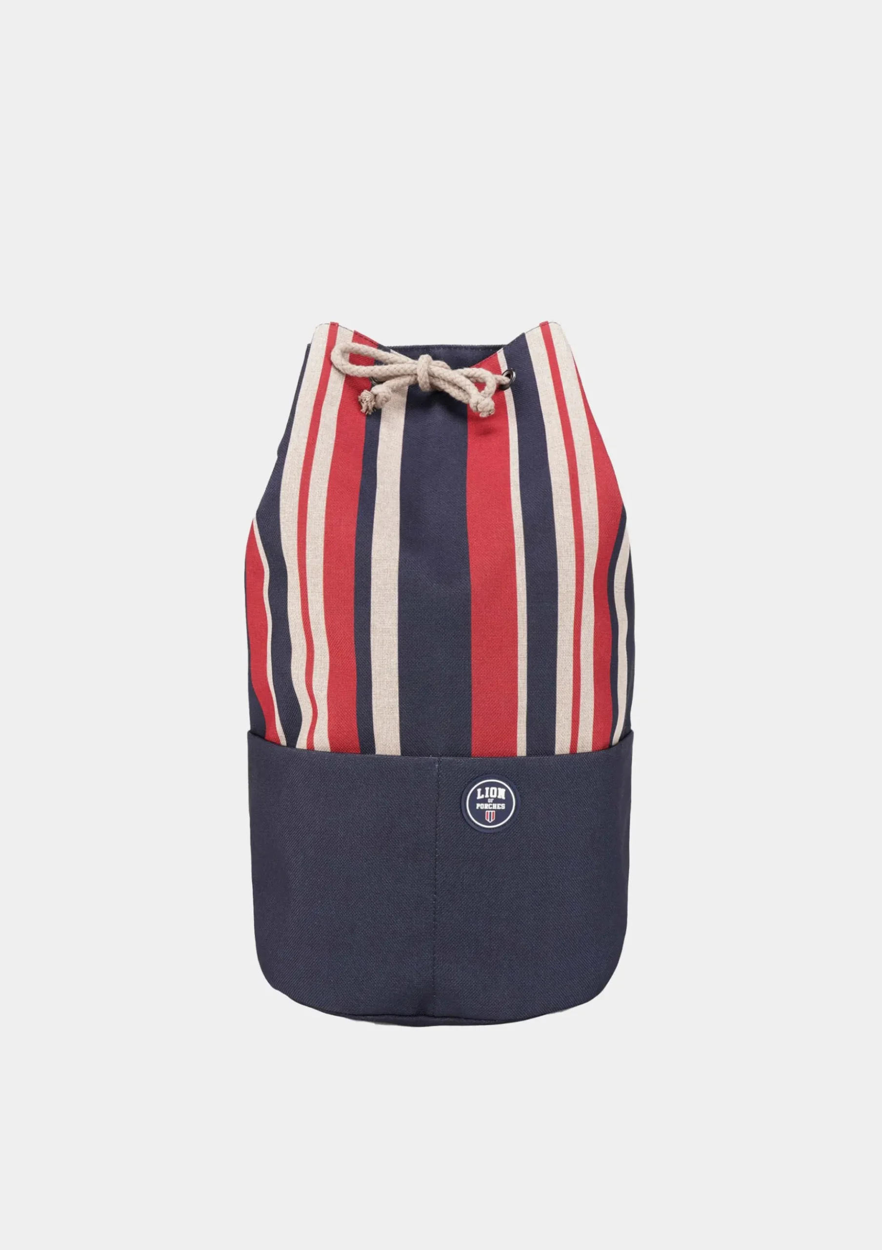 Saco com riscas gráficas. Alças reguláveis ligeiramente almofadadas, para um maior conforto. Fecha com um cordão regulável. Emblema da marca.