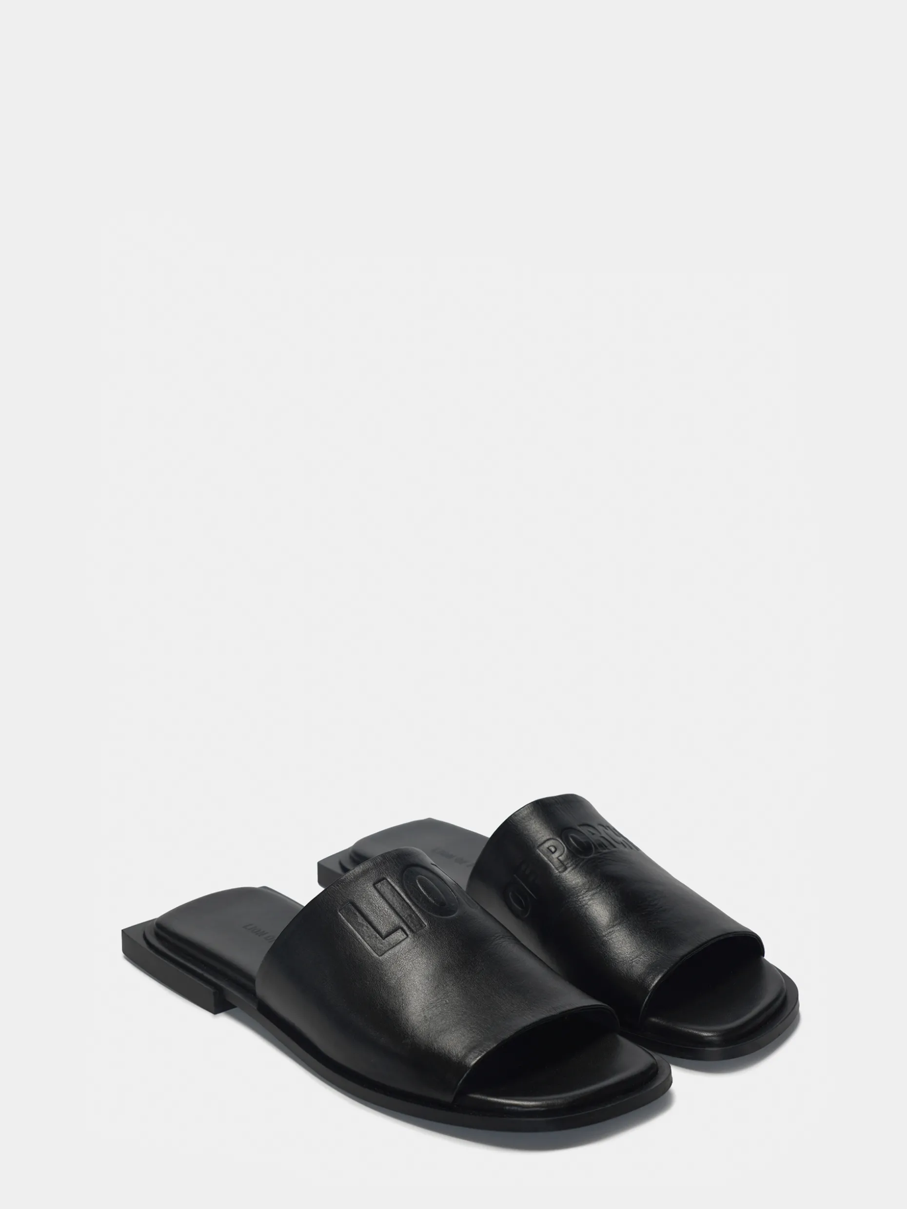 Sandálias em pele. Tacão quadrado. Gravação Lion of Porches na tira.