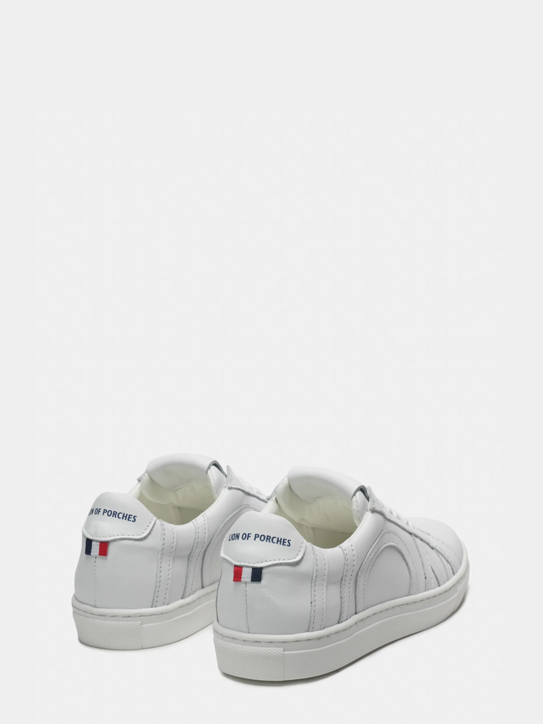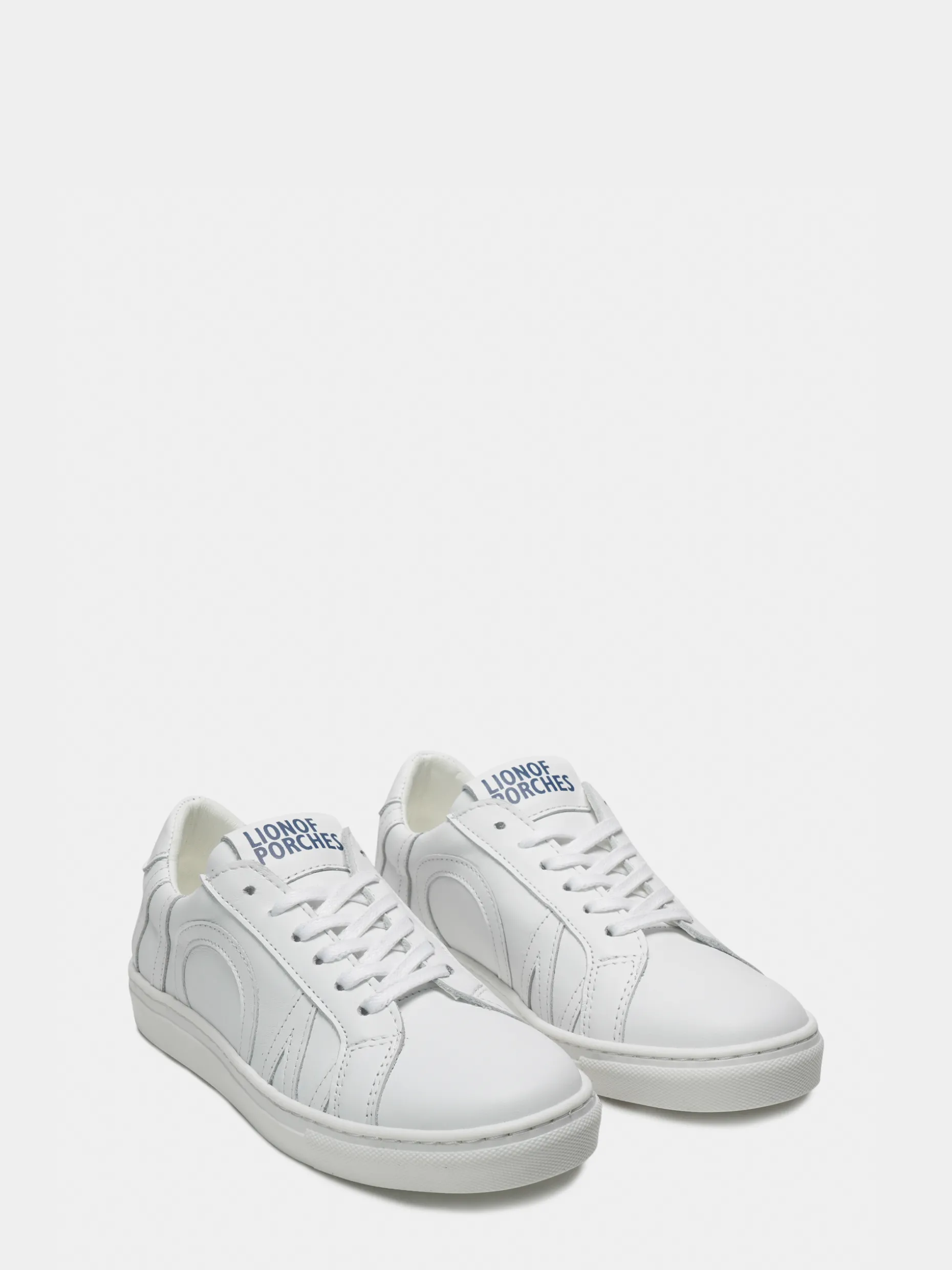 Sapatilhas 100% pele com relevo lateral Lion of Porches. Apertam com cordões. Sola de borracha a contraste. Branding da marca na língua e na parte traseira.