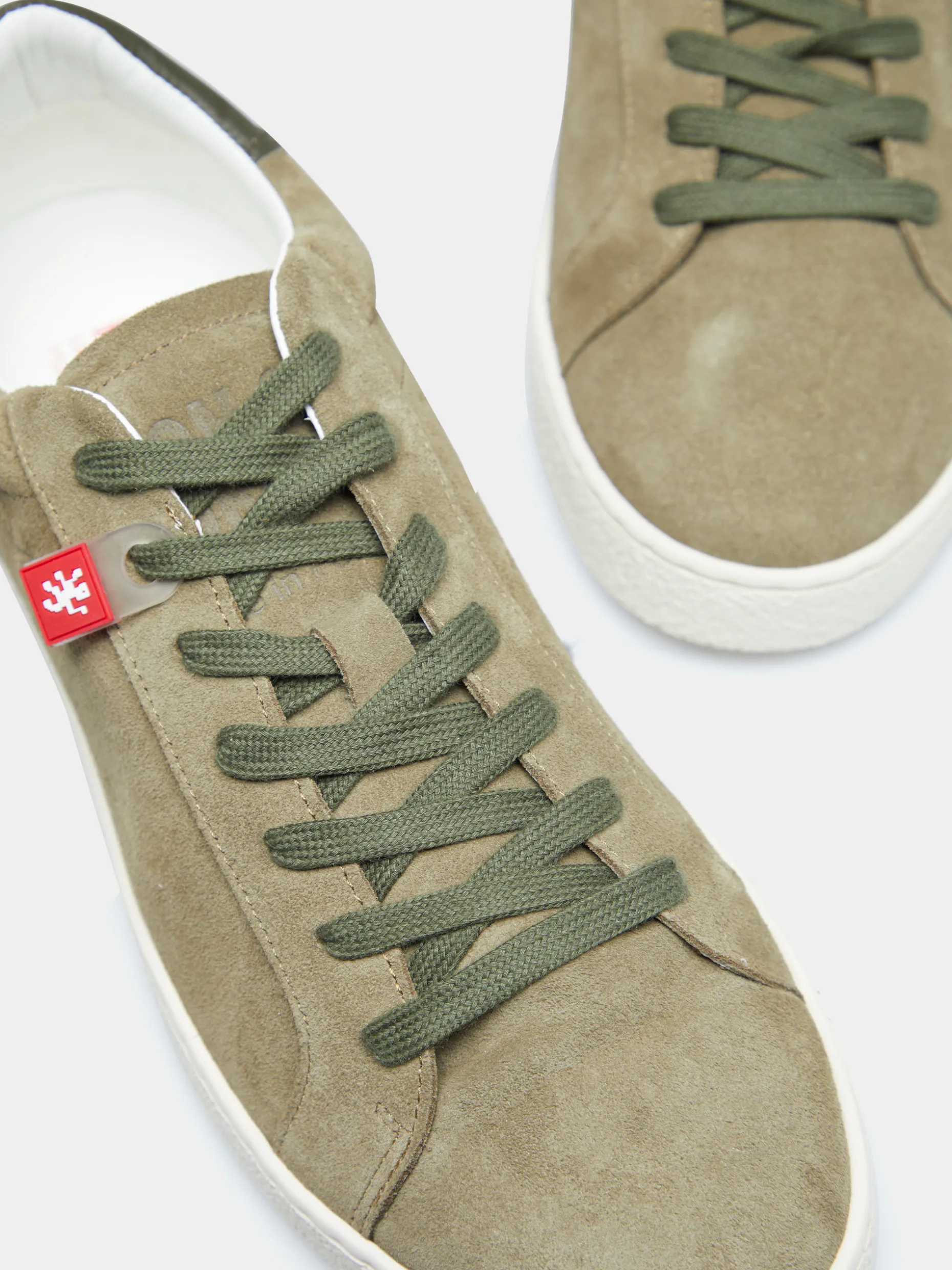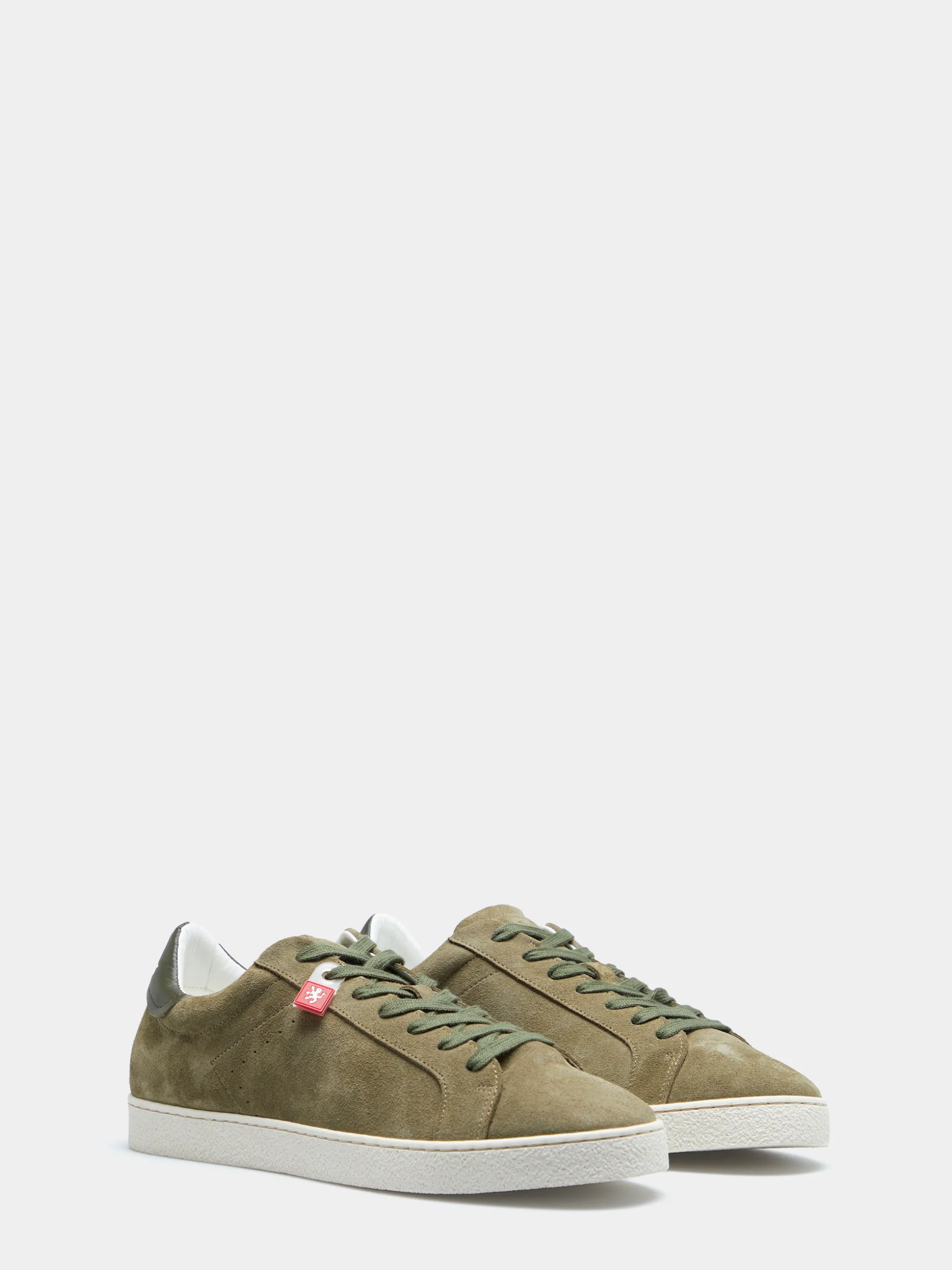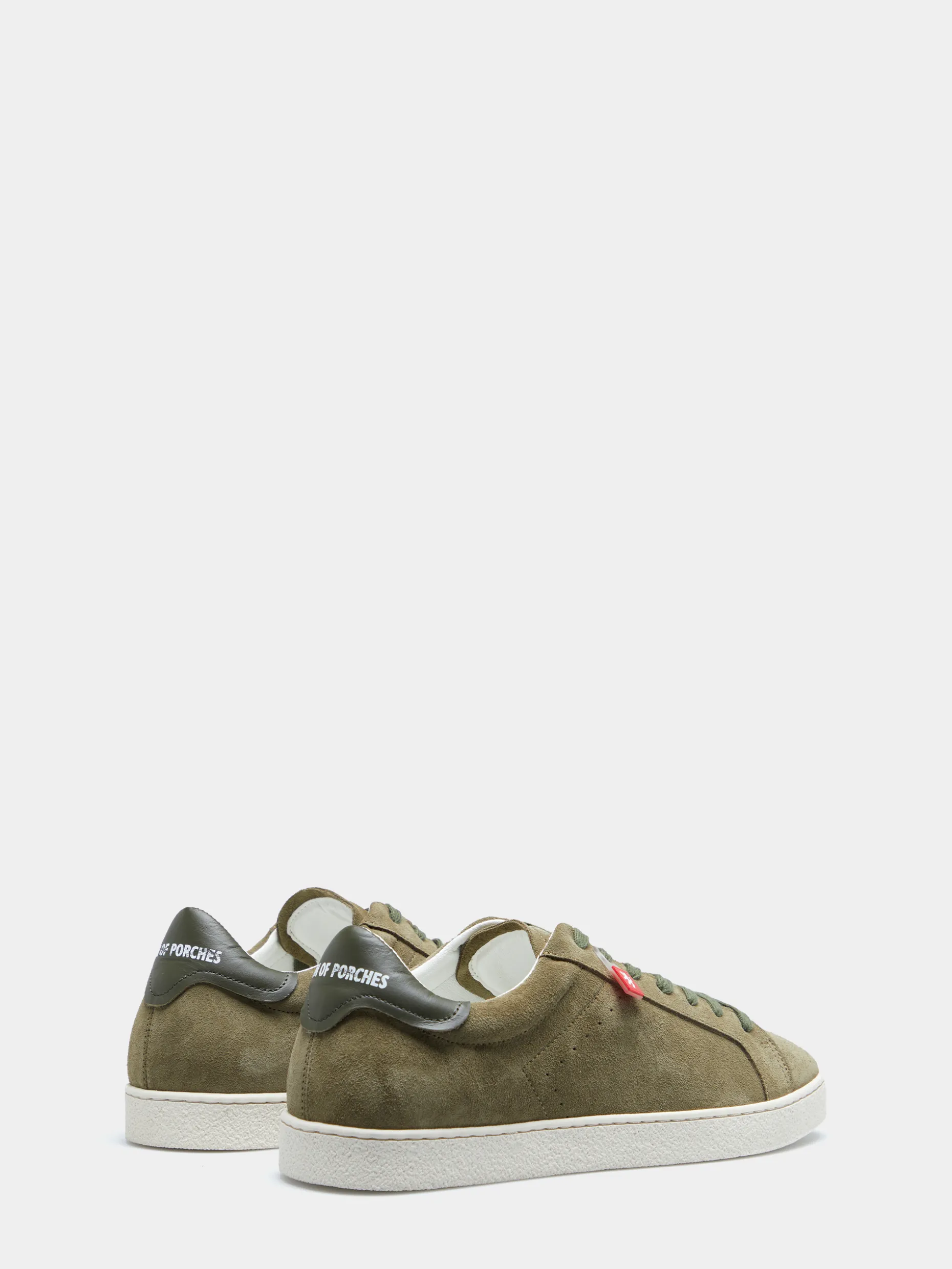 Para um look mais casual, propomos estas sapatilhas em camurça com sola em borracha texturada. Os cordões são ao tom e o calcanhar em pele com logotipo Lion of Porches estampado a serigrafia. Feito em Portugal.