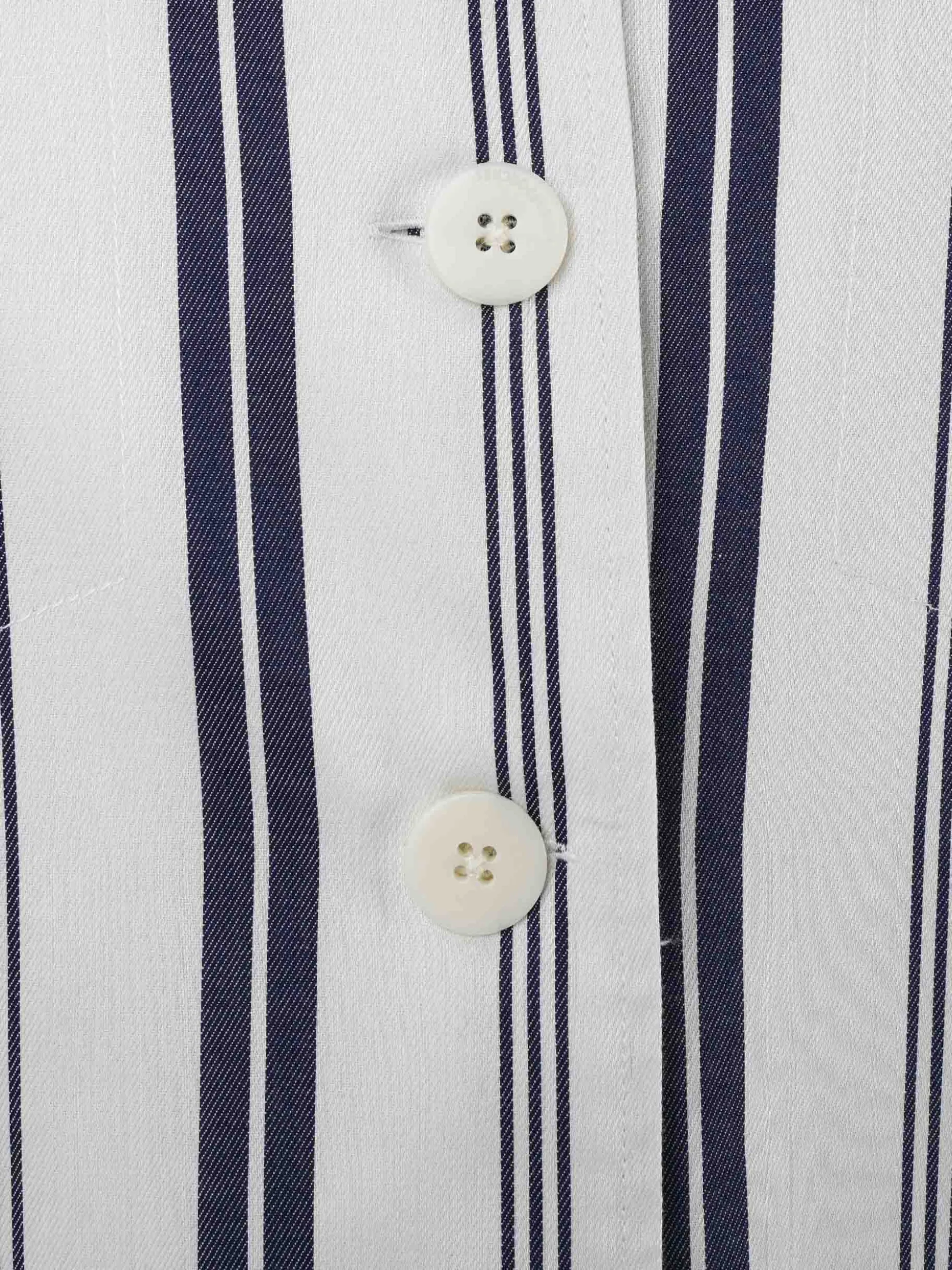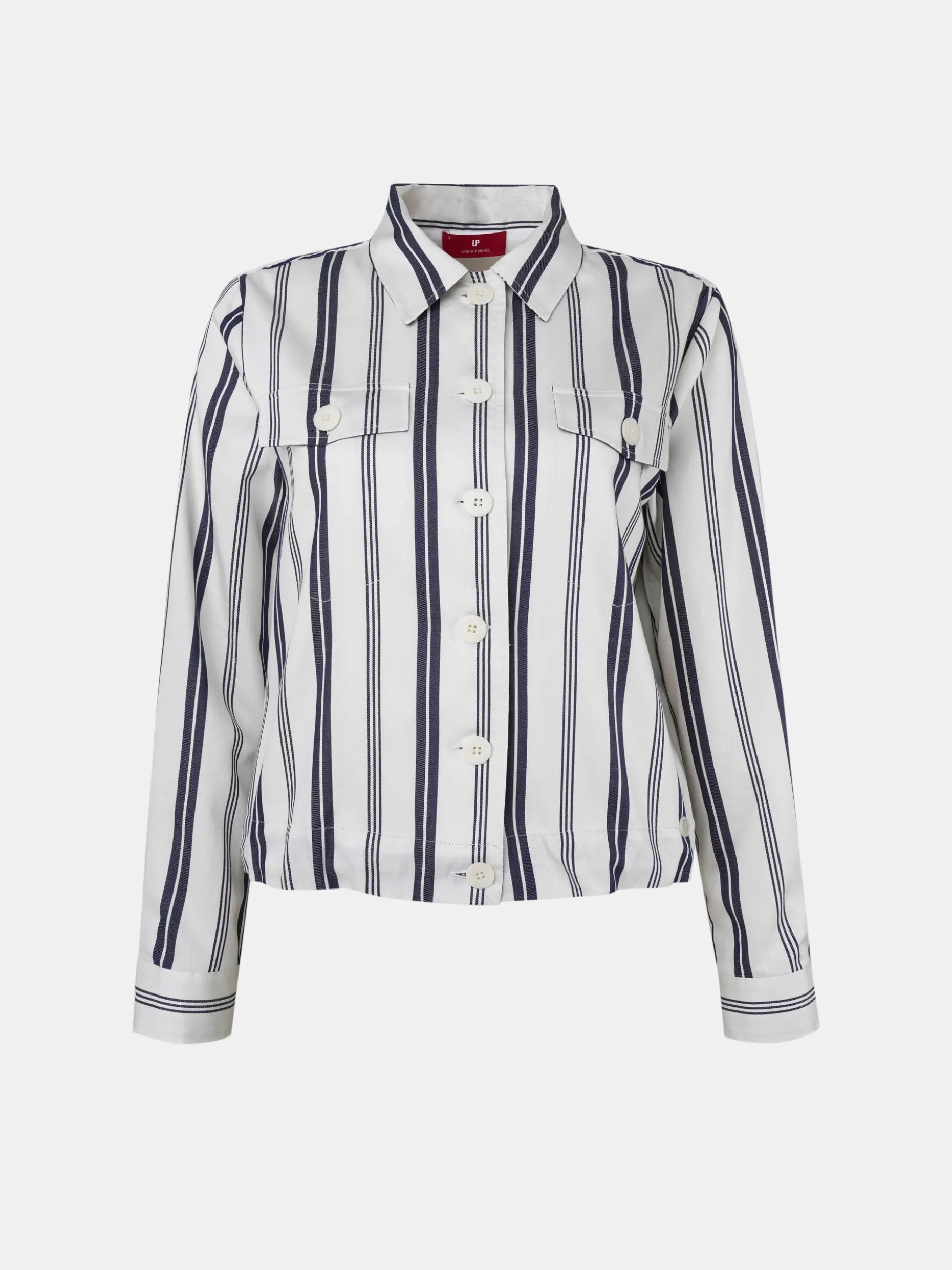 Camisa overshirt com riscas confecionada em 100% algodão. Ajustável no cós por cordão com ponteira personalizada. Bolsos com pala na frente. Colarinho clássico. Aperta na frente com botões.