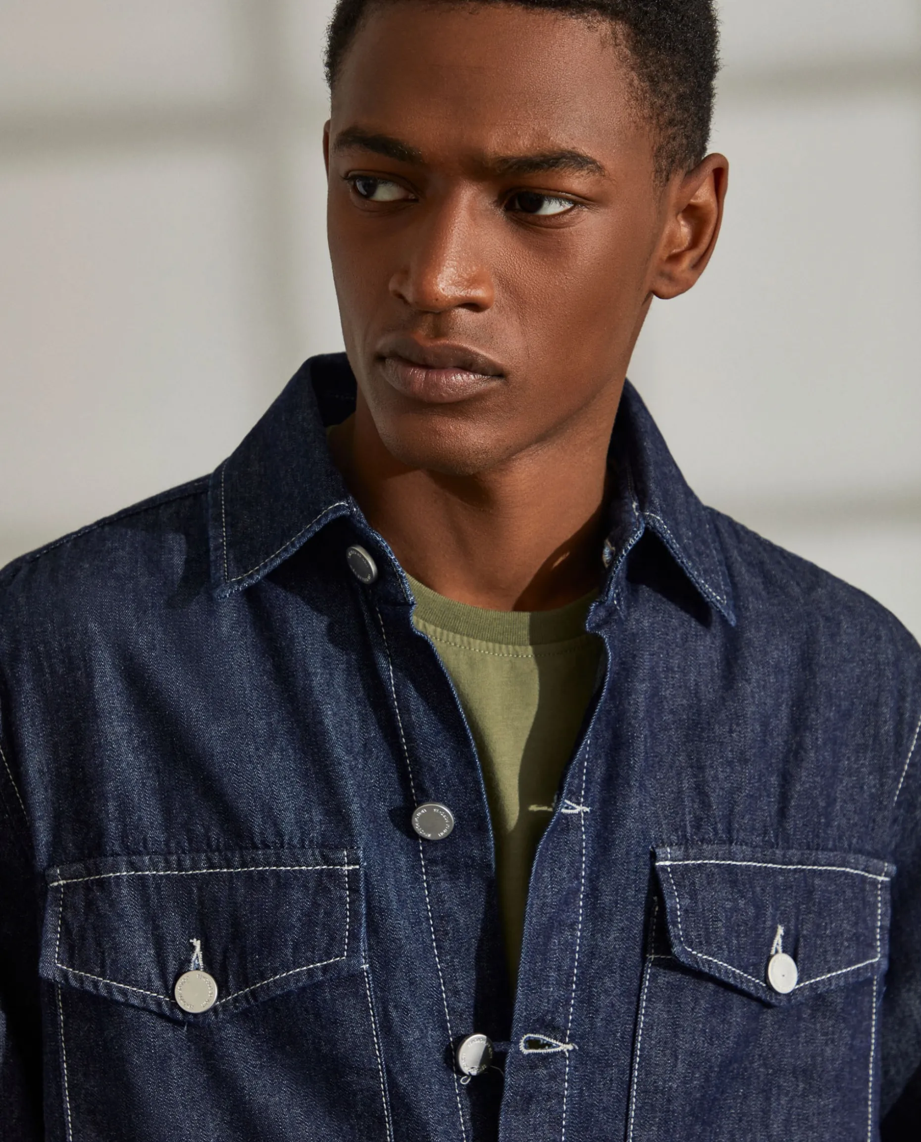 Sobrecamisa de denim. Regular Fit. Aperta com botões personalizados. Emblema estampado na manga esquerda. Dois bolsos no peito de chapa e com pala com botões. Estampado interior “Lion Of Porches”.