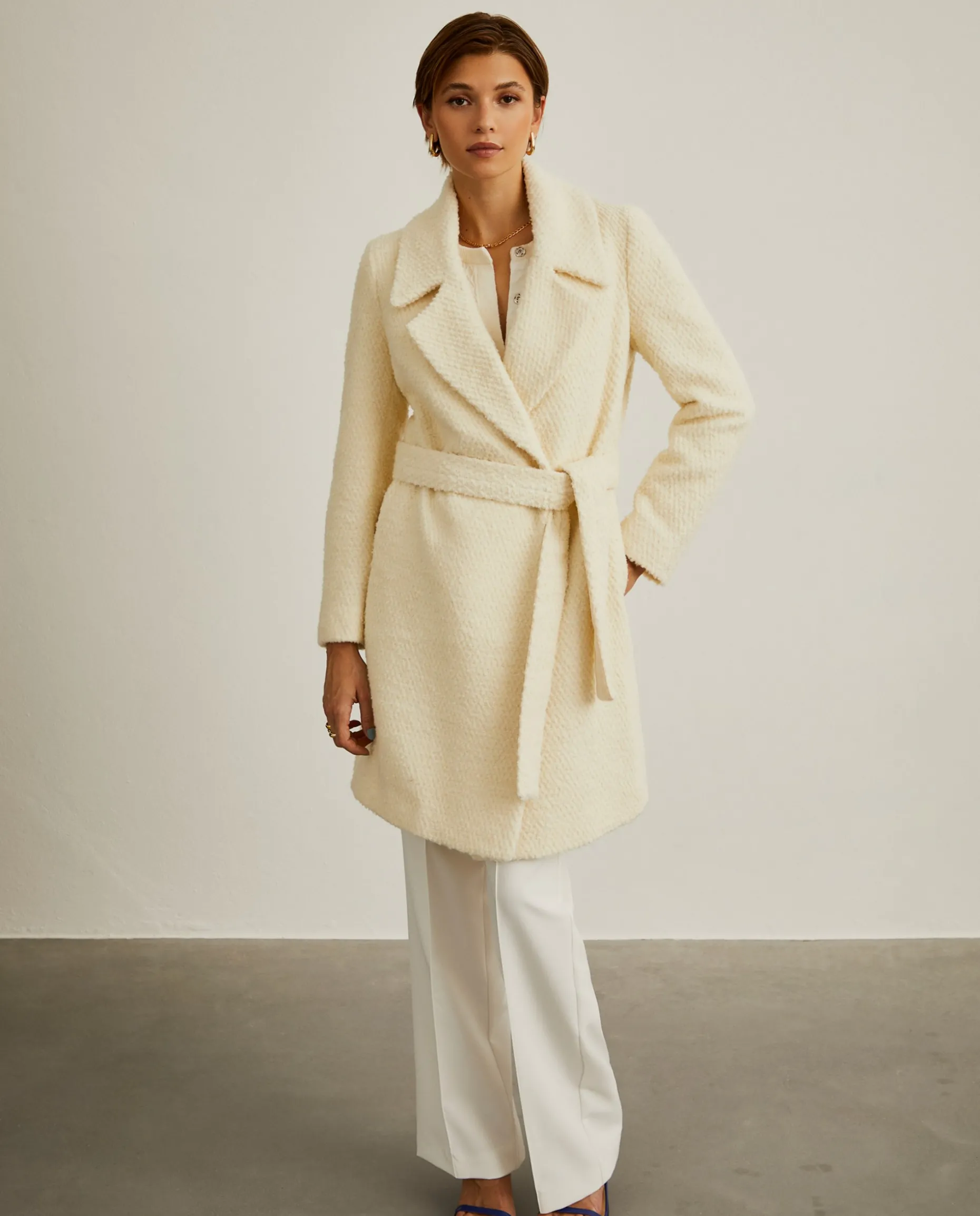 Garanta a máxima elegância com este sobretudo comprido de trespasse. Vem com um cinto ao tom, amovível, para que possa ajustar a gosto. Finaliza com bolsos embutidos nas costuras laterais. Confecionado com uma percentagem de lã e algodão para se manter quente e confortável.