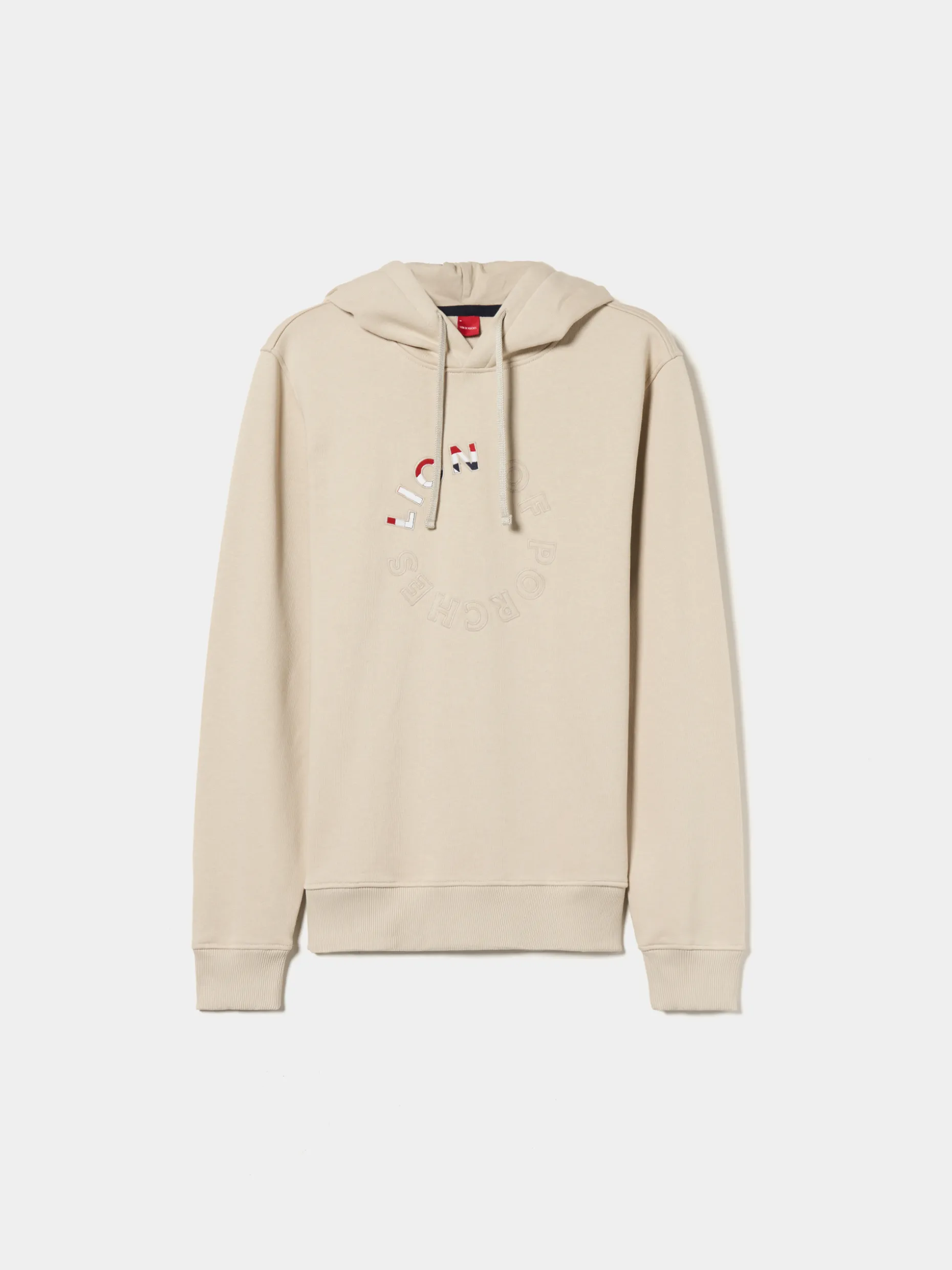 Um essencial num guarda-roupa descontraído e confortável, esta sweater de manga comprida tem capuz ajustável e bordado Lion of Porches na frente. A base e punhos são canelados. É confecionada, na totalidade, em algodão.