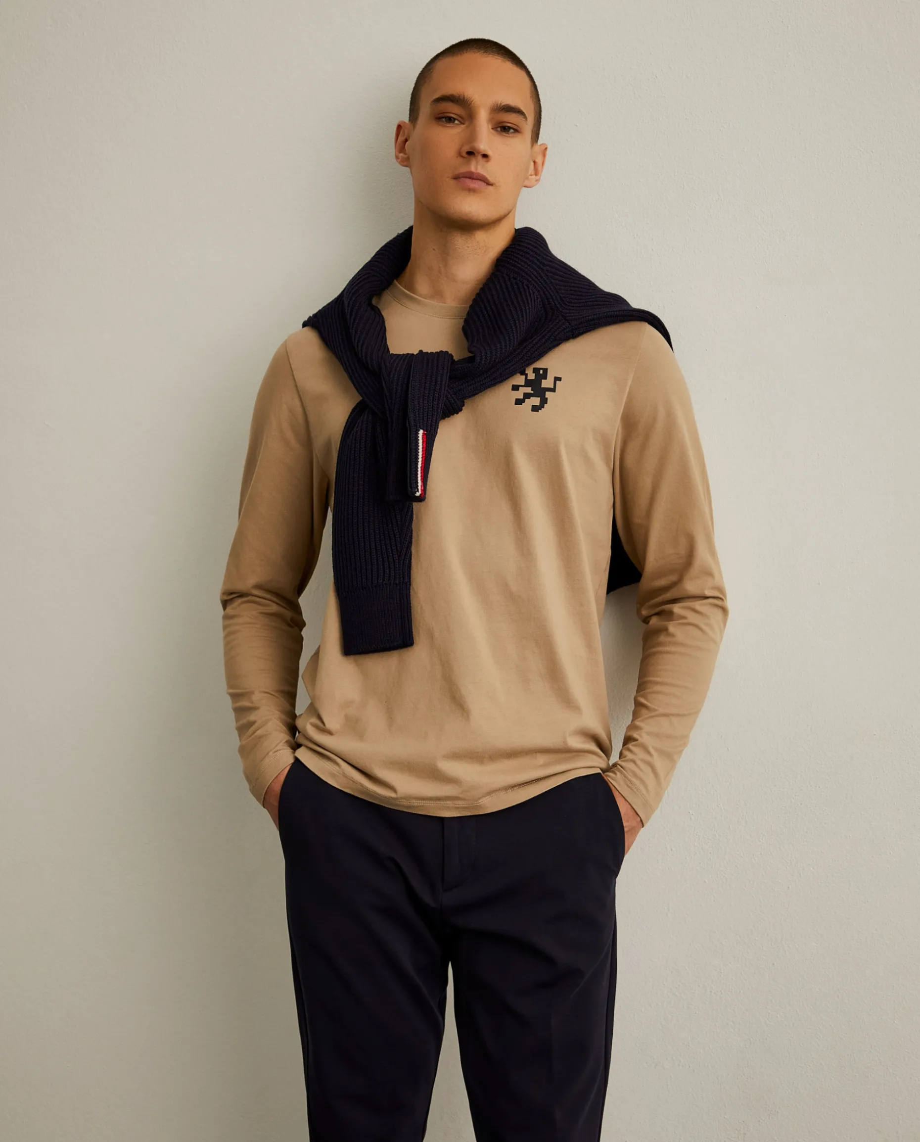 Opte por um look mais descontraído com esta sweater de manga comprida confecionada em algodão. O decote é redondo e finaliza com leão da marca no peito em contraste de cor.