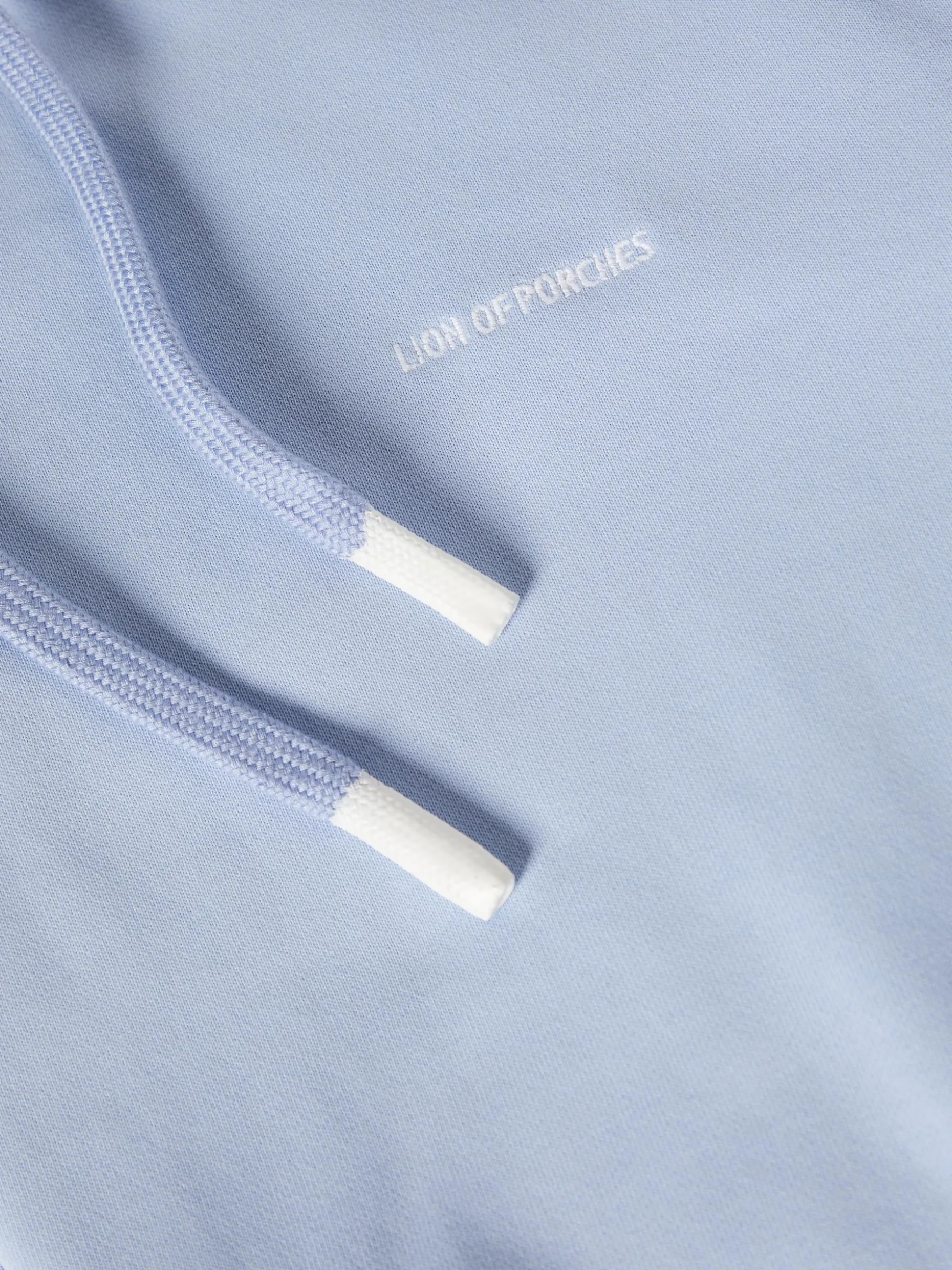 Sweater de manga comprida com capuz ajustável por cordão. A base e punhos são canelados e finaliza com branding Lion of Porches no peito. Disponível em três cores, todas em tons pastel, perfeitas para o verão.