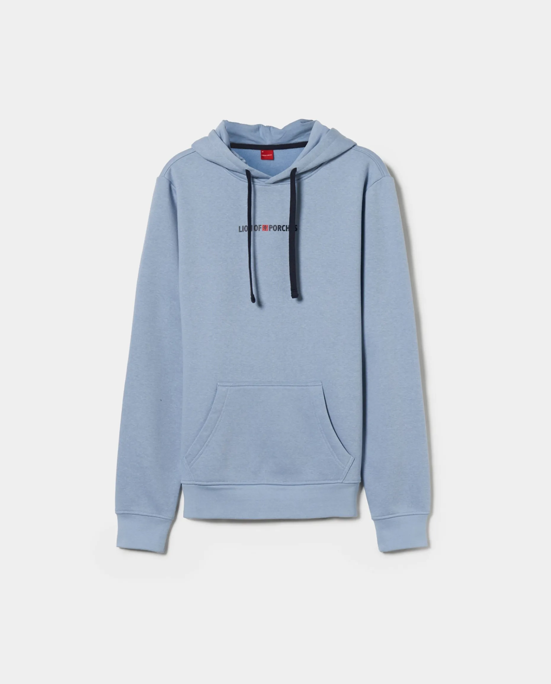 Sweater de manga comprida com capuz para um look casual e confortável. De cor lisa, com estampado Lion of Porches em contraste no peito. O capuz é ajustável. Bolso canguru.