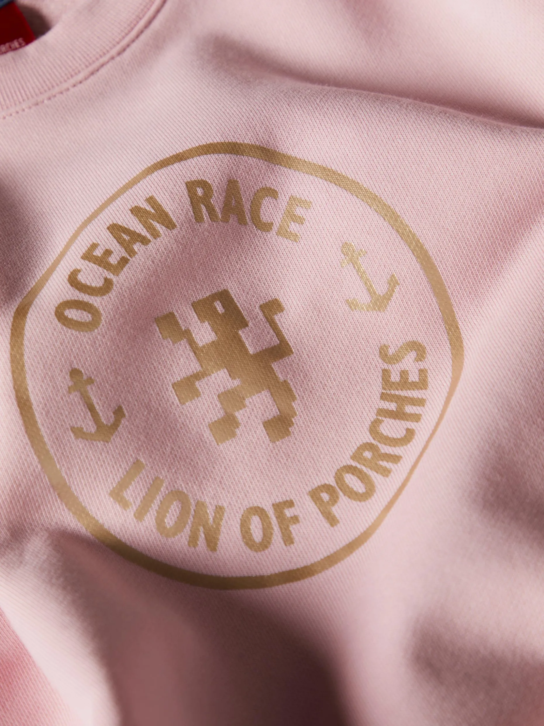 Sweater de manga comprida, com gola redonda, e estampado Lion of Porches em contraste na frente. A base, gola e punhos são canelados Disponível em várias cores.