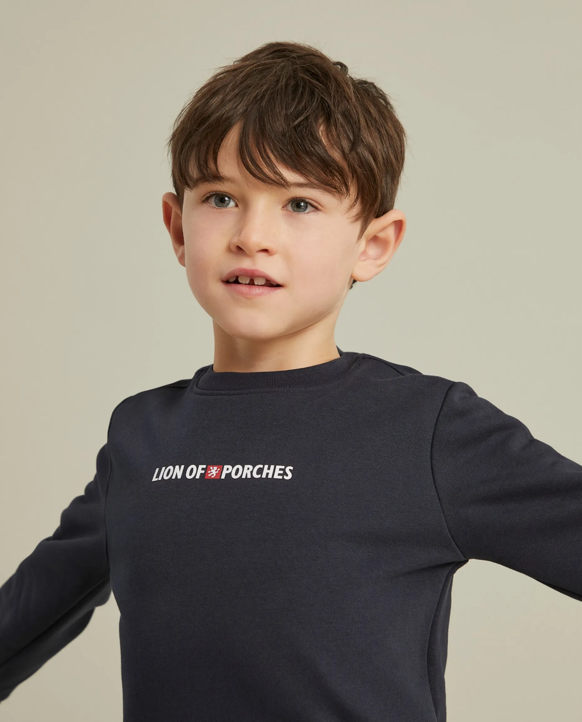 Perfeita para o dia-a-dia dos miúdos, esta sweater de manga comprida tem cor lisa e decote redondo. É cardada por dentro para maior conforto e tem o logotipo Lion of Porches em contraste na frente.