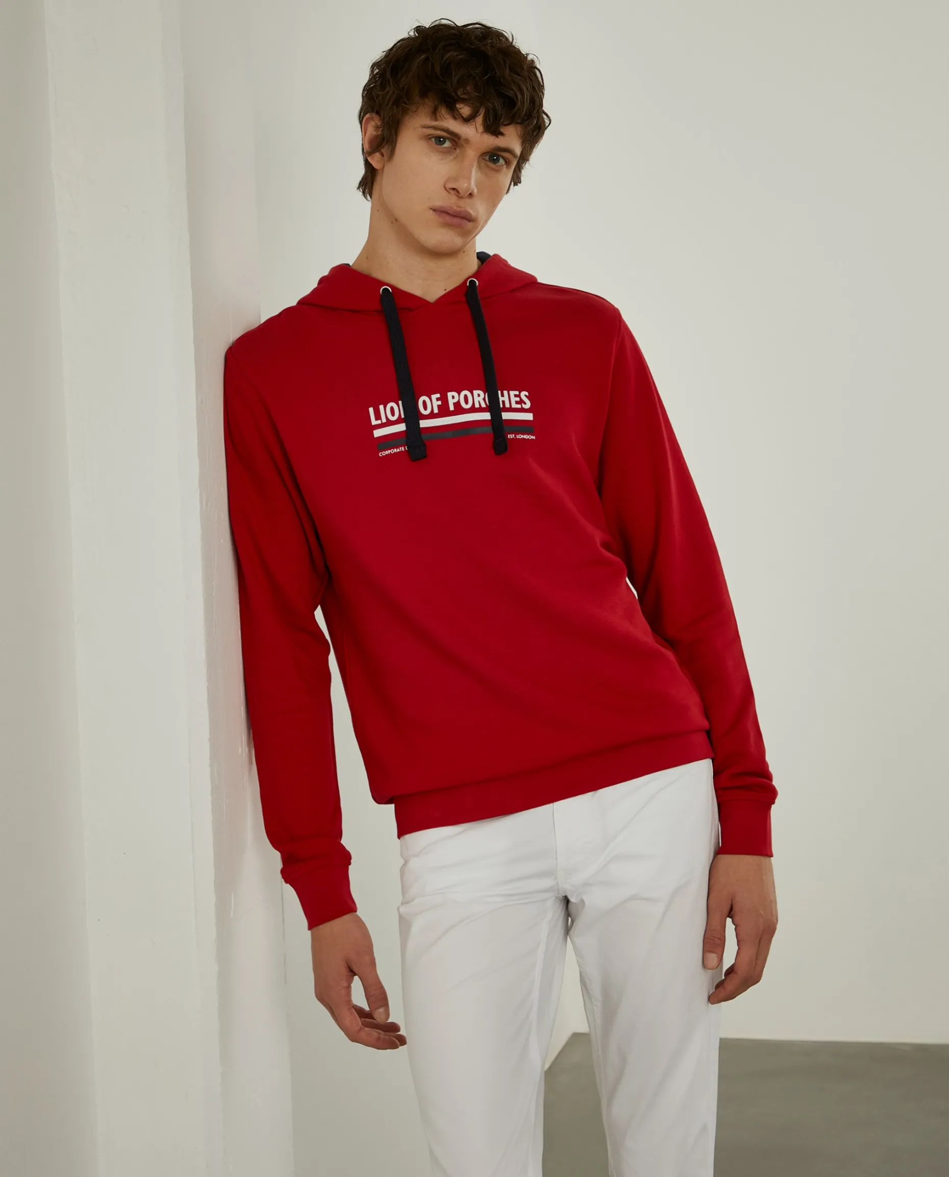 Sweatshirt com capuz para um outfit mais descontraído. De cor lisa, com estampado Lion of Porches em contraste na frente. O capuz é ajustável por cordão da mesma cor que o interior do capuz. É confecionada em algodão para maior conforto e suavidade. Disponível em várias cores.