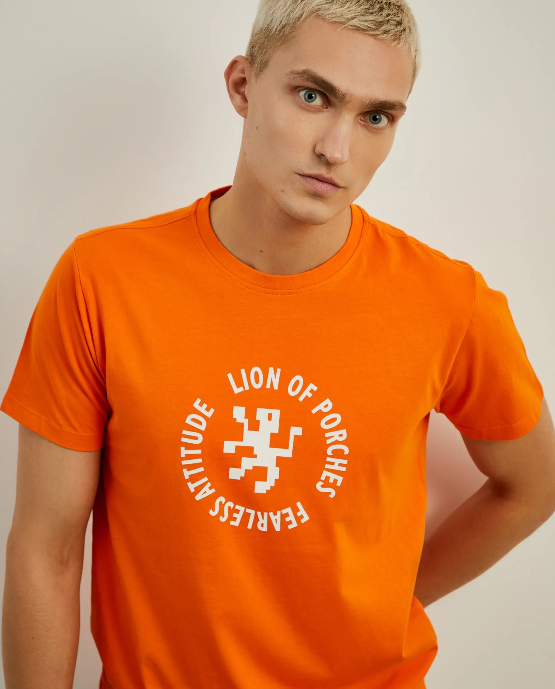 T-shirt de manga curta e gola redonda com logotipo Lion of Porches em contraste na frente. É confecionada em algodão, na totalidade, para maior conforto e suavidade.