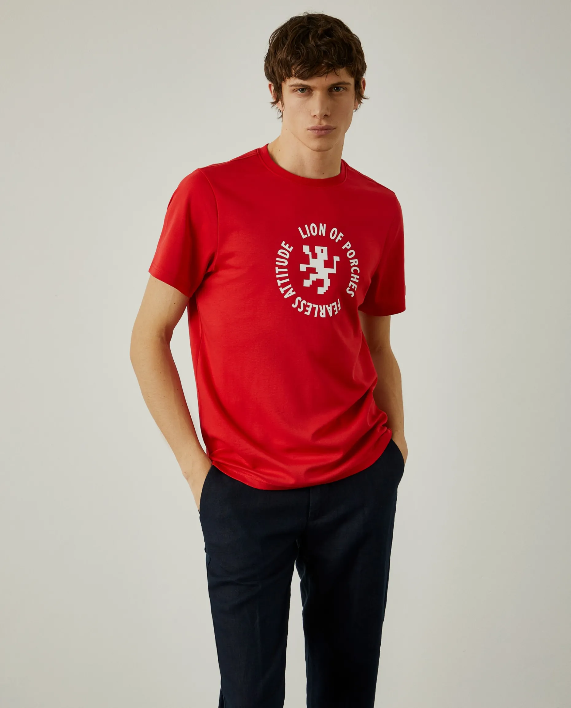 T-shirt de manga curta e gola redonda com logotipo Lion of Porches em contraste na frente. É confecionada em algodão, na totalidade, para maior conforto e suavidade.