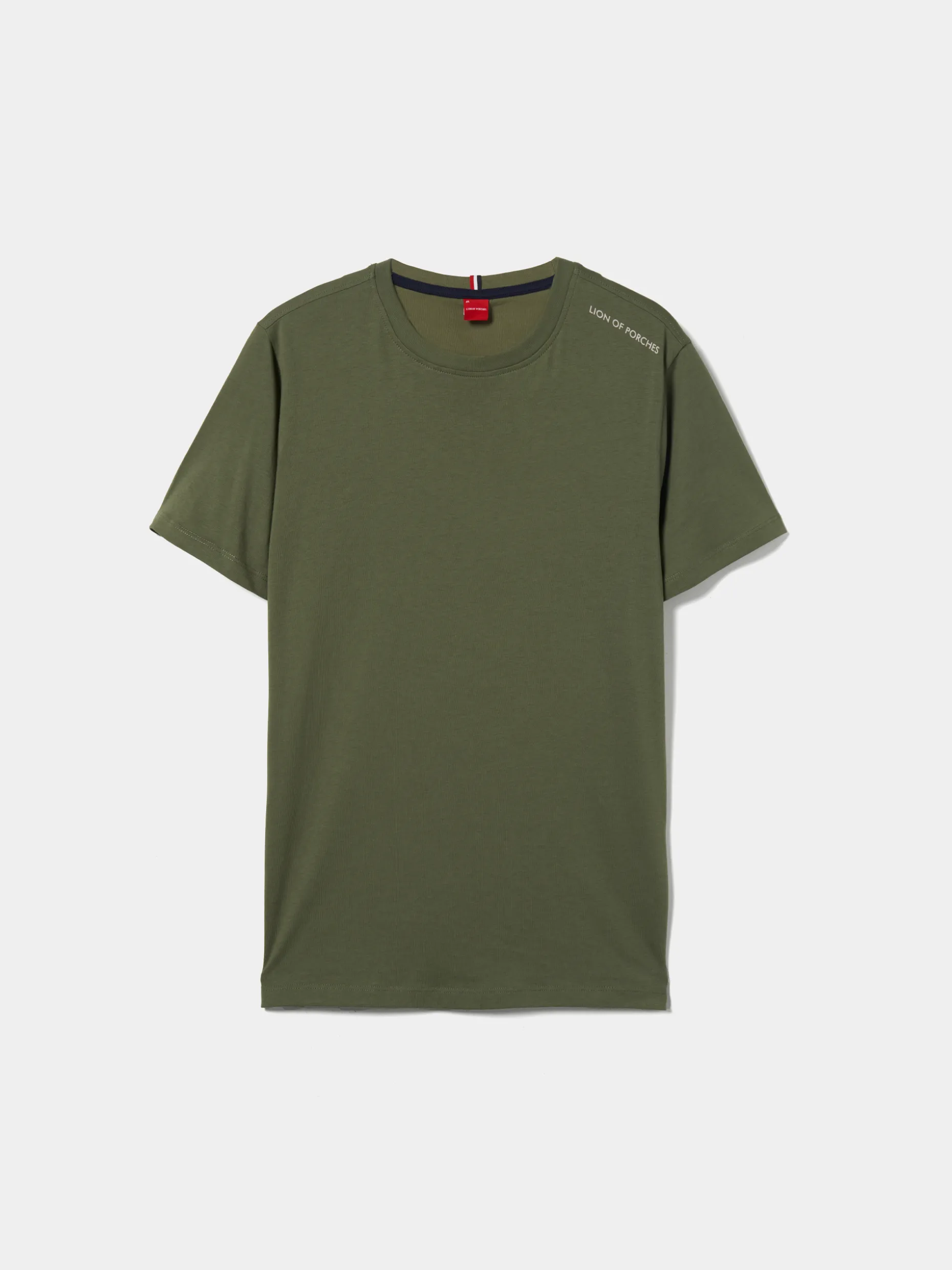 T-shirt básica, de manga curta, com estampado Lion of Porches em contraste no ombro. É confecionada em algodão para maior conforto e suavidade. Disponível em várias cores.